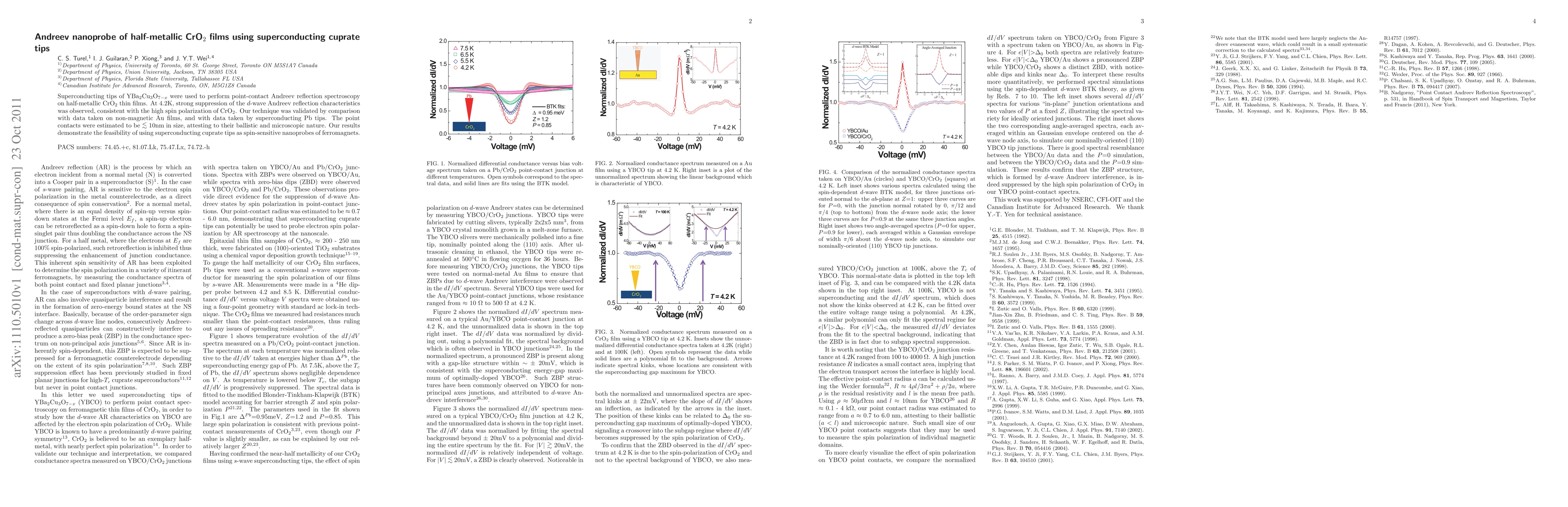 This study employs YBa$_{2}$Cu$_{3}$O$_{7-x}$ superconducting tips to investigate half-metallic CrO$_{2}$ films via Andreev reflection spectroscopy, revealing strong suppression of d-wave characteristics at 4.2K, indicative of CrO$_{2}$'s high spin polarization. The technique's validity is confirmed through comparative analysis with non-magnetic Au films and Pb tips, highlighting the potential of superconducting cuprate tips as spin-sensitive nanoprobes for ferromagnets.