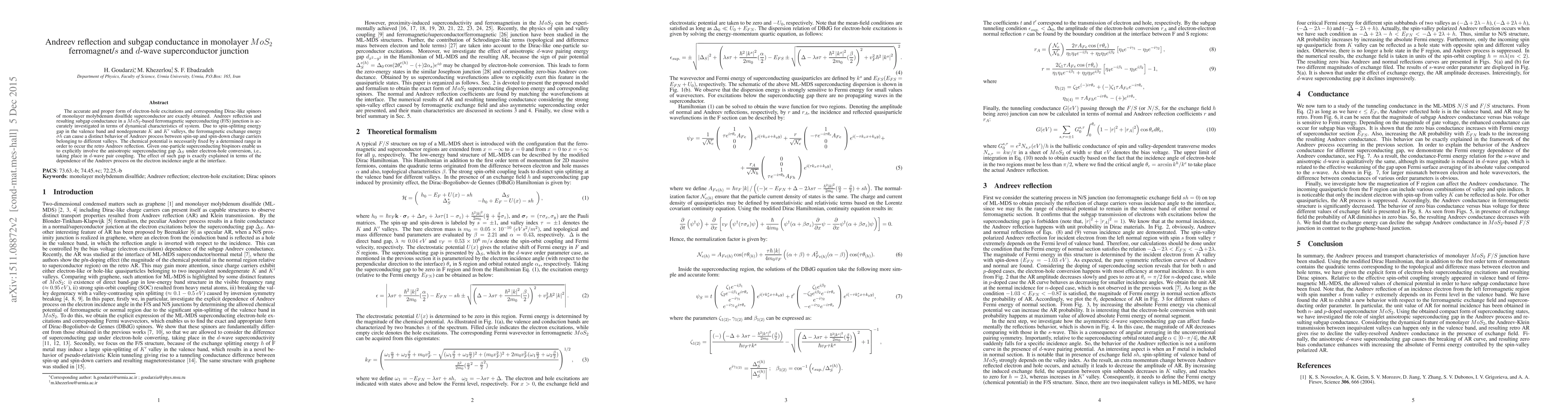 The accurate and proper form of electron-hole excitations and corresponding Dirac-like spinors of monolayer molybdenum disulfide superconductor are exactly obtained. Andreev reflection and resulting subgap conductance in a $MoS_2$-based ferromagnetic superconducting (F/S) junction is accurately investigated in terms of dynamical characteristics of system. Due to spin-splitting energy gap in the valence band and nondegenerate $K$ and $K'$ valleys, the ferromagnetic exchange energy $\sigma h$ can cause a distinct behavior of Andreev process between spin-up and spin-down charge carriers belonging to different valleys. The chemical potential is necessarily fixed by a determined range in order to occur the retro Andreev reflection. Given one-particle superconducting bispinors enable us to explicitly involve the anisotropic superconducting gap $\Delta_S$ under electron-hole conversion, i.e., taking place in $d$-wave pair coupling. The effect of such gap is exactly explained in terms of the dependence of the Andreev process on the electron incidence angle at the interface.