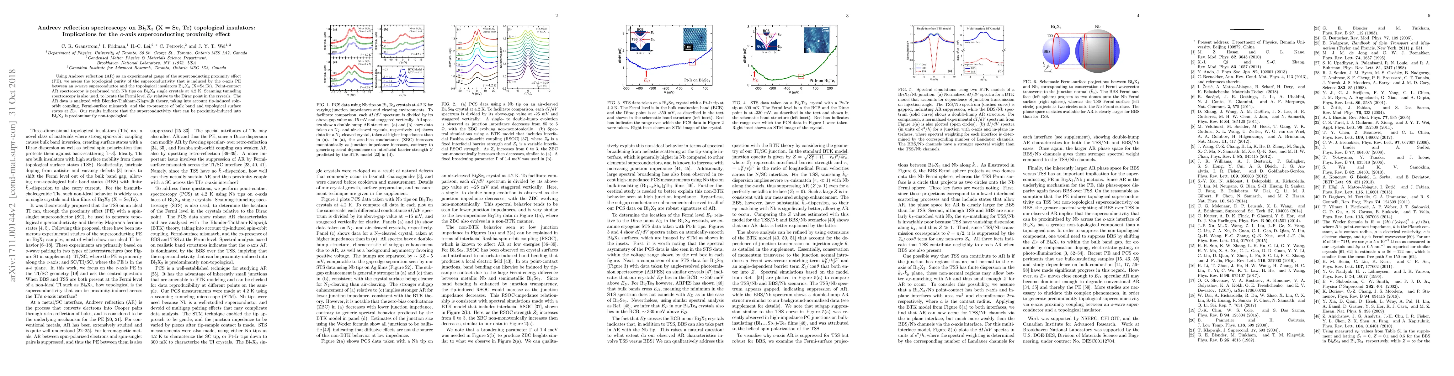 Using Andreev reflection (AR) as an experimental gauge of the superconducting proximity effect (PE), we assess the topological purity of the superconductivity that is induced by the c-axis PE between an s-wave superconductor and the topological insulators Bi$_{2}$X$_{3}$ (X=Se,Te). Point-contact AR spectroscopy is performed with Nb tips on Bi$_{2}$X$_{3}$ single crystals at 4.2 K. Scanning tunneling spectroscopy is also used, to locate the Fermi level $E_F$ relative to the Dirac point in the crystals. The AR data is analyzed with Blonder-Tinkham-Klapwijk theory, taking into account tip-induced spin-orbit coupling, Fermi-surface mismatch, and the co-presence of bulk band and topological surface states at $E_F$. Our results indicate that the superconductivity that can be proximity-induced into Bi$_{2}$X$_{3}$ is predominantly non-topological.