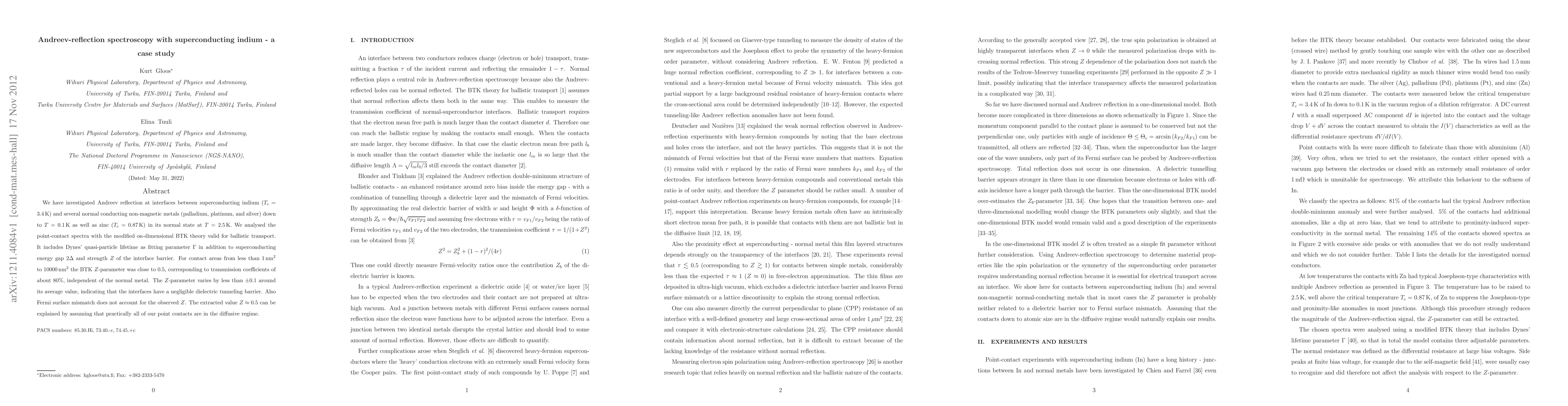 We have investigated Andreev reflection at interfaces between superconducting indium (T_c = 3.4 K) and several normal conducting non-magnetic metals (palladium, platinum, and silver) down to T = 0.1 K as well as zinc (T_c = 0.87 K) in its normal state at T = 2.5 K. We analysed the point-contact spectra with the modified one-dimensional BTK theory valid for ballistic transport. It includes Dynes' quasi-particle lifetime as fitting parameter Gamma in addition to superconducting energy gap 2Delta and strength Z of the interface barrier. For contact areas from less than 1 nm^2 to 10000 nm^2 the BTK Z-parameter was close to 0.5, corresponding to transmission coefficients of about 80%, independent of the normal metal. The Z-parameter varies by less than +/-0.1 around its average value, indicating that the interfaces have a negligible dielectric tunneling barrier. Also Fermi surface mismatch does not account for the observed Z. The extracted value Z approx 0.5 can be explained by assuming that practically all of our point contacts are in the diffusive regime.