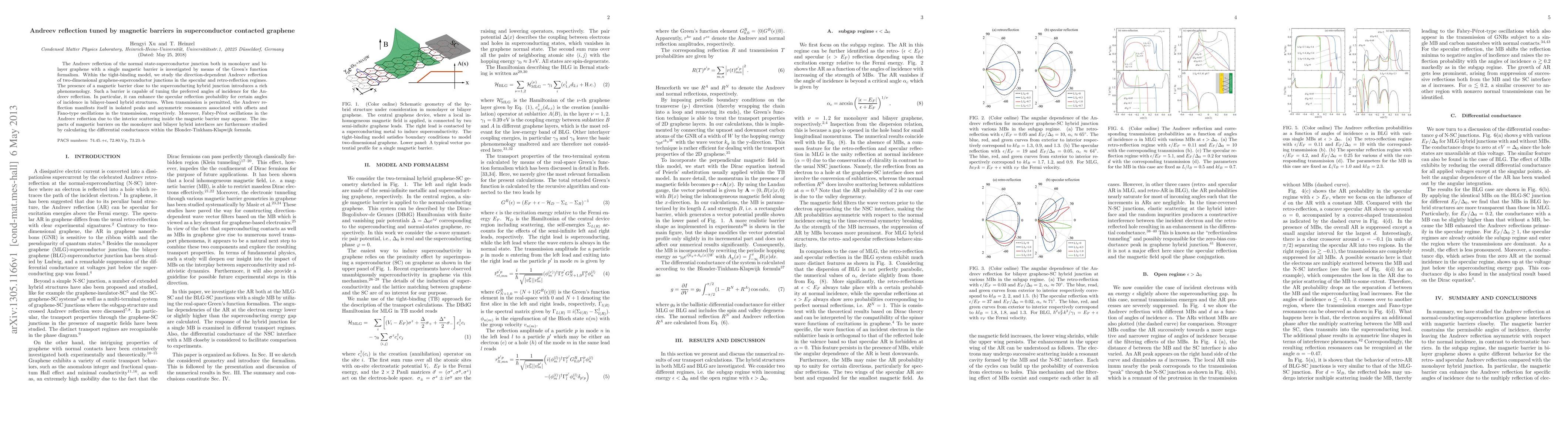 The Andreev reflection of the normal state-superconductor junction both in monolayer and bilayer graphene with a single magnetic barrier is investigated by means of the Green's function formalism. Within the tight-binding model, we study the direction-dependent Andreev reflection of two-dimensional graphene-superconductor junctions in the specular and retro-reflection regimes. The presence of a magnetic barrier close to the superconducting hybrid junction introduces a rich phenomenology. Such a barrier is capable of tuning the preferred angles of incidence for the Andreev reflection. In particular, it can enhance the specular reflection probability for certain angles of incidence in bilayer-based hybrid structures. When transmission is permitted, the Andreev reflection manifests itself in isolated peaks and asymmetric resonances associated with offsets and Fano-type oscillations in the transmission, respectively. Moreover, Fabry-P\'{e}rot oscillations in the Andreev reflection due to the interior scattering inside the magnetic barrier may appear. The impacts of magnetic barriers on the monolayer and bilayer hybrid interfaces are furthermore studied by calculating the differential conductances within the Blonder-Tinkham-Klapwijk formula.
