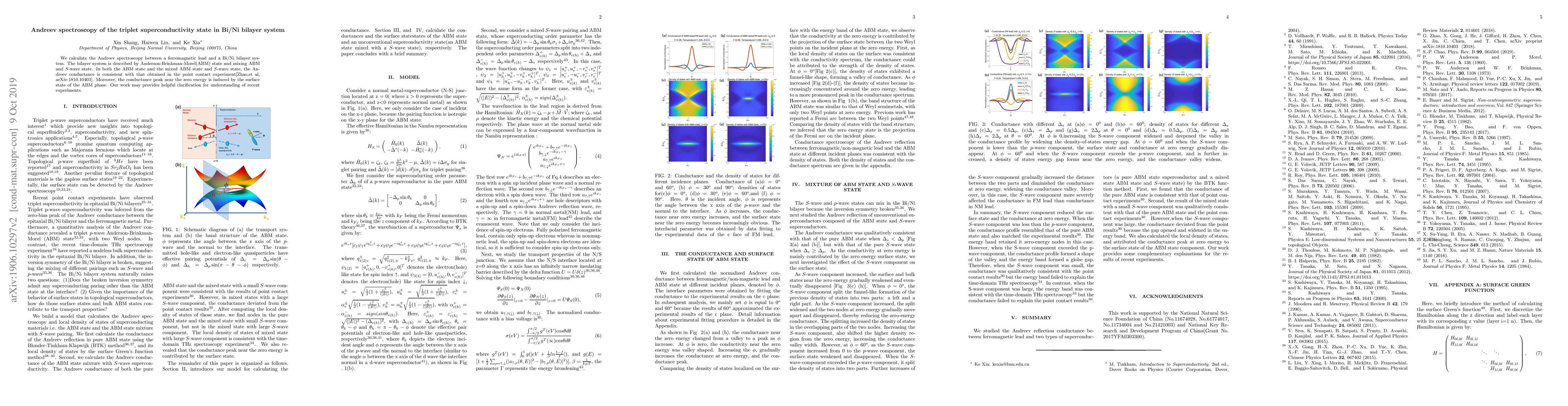 We calculate the Andreev spectroscopy between a ferromagnetic lead and Bi/Ni bilayer system for three types of superconducting states, including ABM state, ABM state mixing with S-wave state, ABM state mixing with pz-wave state. Among them, ABM state and ABM state mixing with S- wave state can obtain the Andreev conductance consistent with the point contact experiment[G. J. Zhao,et al, arXiv:1810.10403], but failed to explain the experiment of time-domain THz spectroscopy experiment[Prashant Chauhan,et al, Phys. Rev. Lett. 122, 017002(2019)]. Only the ABM state mixing with pz-wave state can explain both experiments. Besides, we reveal the conductance peak near the zero energy is induced by the surface state of the ABM phase. Our work may provides helpful clarification for understanding of recent experiments.