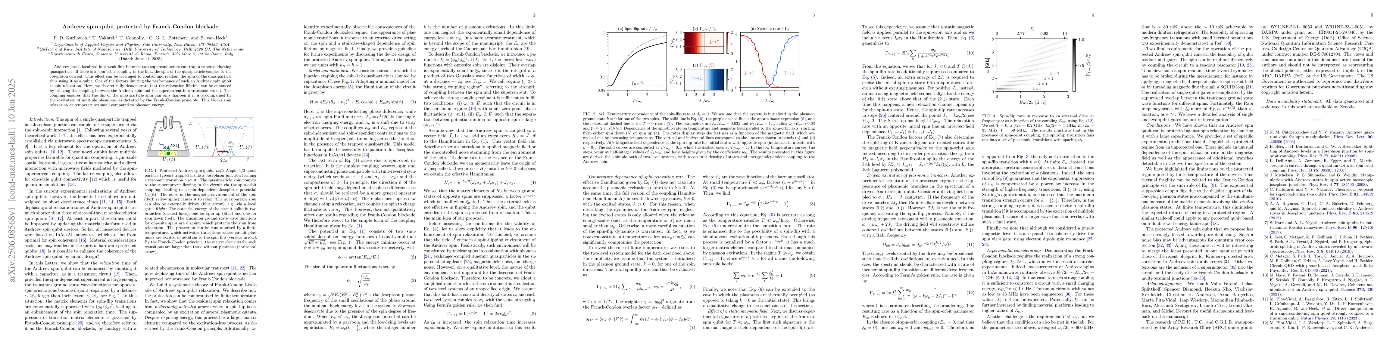 Andreev levels localized in a weak link between two superconductors can trap a superconducting quasiparticle. If there is a spin-orbit coupling in the link, the spin of the quasiparticle couples to the Josephson current. This effect can be leveraged to control and readout the spin of the quasiparticle thus using it as a qubit. One of the factors limiting the performance of such an Andreev spin qubit is spin relaxation. Here, we theoretically demonstrate that the relaxation lifetime can be enhanced by utilizing the coupling between the Andreev spin and the supercurrent in a transmon circuit. The coupling ensures that the flip of the quasiparticle spin can only happen if it is accompanied by the excitation of multiple plasmons, as dictated by the Frank-Condon principle. This blocks spin relaxation at temperatures small compared to plasmon energy.