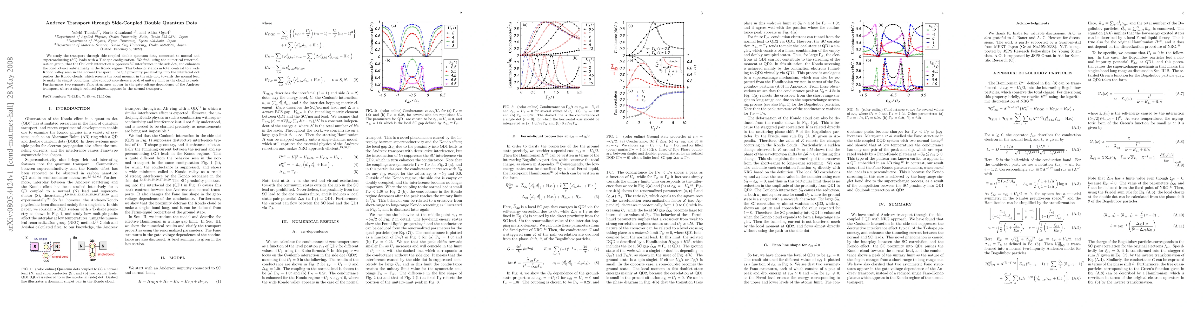 This study investigates transport through side-coupled double quantum dots connected to normal and superconducting leads, revealing that Coulomb interaction suppresses superconducting interference and enhances conductance in the Kondo regime. The superconducting proximity effect pushes Kondo clouds towards the normal lead, leading to a peak in conductance and two distinct Fano structures in Andreev transport, contrasting the single plateau seen in normal transport.