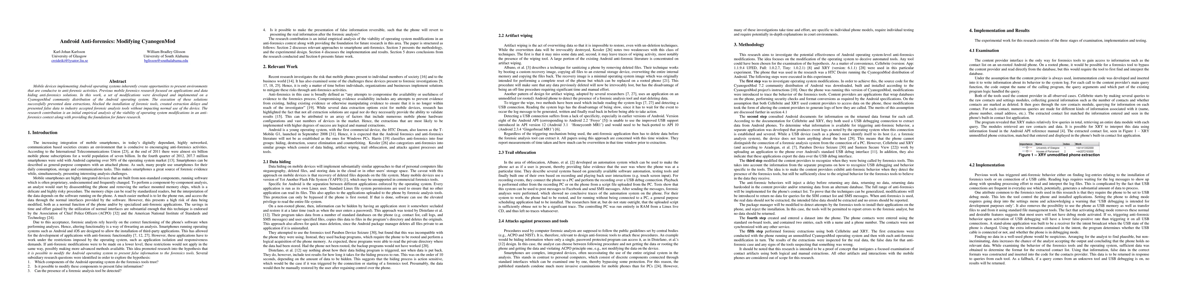 This paper explores anti-forensic modifications implemented on CyanogenMod, an Android OS distribution, to hinder data extraction and forensic tool installation. The modifications successfully obstruct forensic analysis while maintaining normal device functionality, offering a foundation for future anti-forensic research.