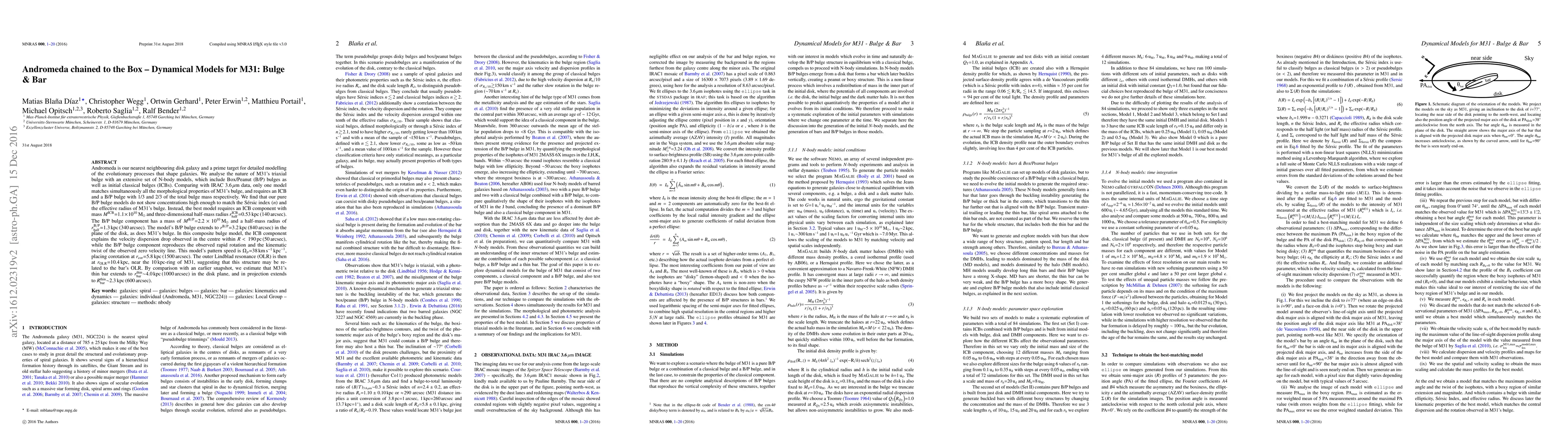 Andromeda is our nearest neighbouring disk galaxy and a prime target for detailed modelling of the evolutionary processes that shape galaxies. We analyse the nature of M31's triaxial bulge with an extensive set of N-body models, which include Box/Peanut (B/P) bulges as well as initial classical bulges (ICBs). Comparing with IRAC 3.6$\mu m$ data, only one model matches simultaneously all the morphological properties of M31's bulge, and requires an ICB and a B/P bulge with 1/3 and 2/3 of the total bulge mass respectively. We find that our pure B/P bulge models do not show concentrations high enough to match the S\'ersic index ($n$) and the effective radius of M31's bulge. Instead, the best model requires an ICB component with mass $M^{\rm ICB}=1.1\times10^{10}{\rm M_{\odot}}$ and three-dimensional half-mass radius $r_{\rm half}^{\rm ICB}$=0.53 kpc (140 arcsec). The B/P bulge component has a mass of $M^{\rm B/P}=2.2\times10^{10}{\rm M_{\odot}}$ and a half-mass radius of $r_{\rm half}^{\rm B/P}$=1.3 kpc (340 arcsec). The model's B/P bulge extends to $r^{\rm B/P}$=3.2 kpc (840 arcsec) in the plane of the disk, as does M31's bulge. In this composite bulge model, the ICB component explains the velocity dispersion drop observed in the centre within $R<$190 pc (50 arcsec), while the B/P bulge component reproduces the observed rapid rotation and the kinematic twist of the observed zero velocity line. This model's pattern speed is $\Omega_p$=38 km/s/kpc, placing corotation at $r_{\rm cor}$=5.8 kpc (1500 arcsec). The outer Lindblad resonance (OLR) is then at $r_{\rm OLR}$=10.4kpc, near the 10kpc-ring of M31, suggesting that this structure may be related to the bar's OLR. By comparison with an earlier snapshot, we estimate that M31's thin bar extends to $r_{\rm bar}^{\rm thin}\sim$4.0 kpc (1000 arcsec) in the disk plane, and in projection extends to $R_{\rm bar}^{\rm thin}\sim$2.3 kpc (600 arcsec).