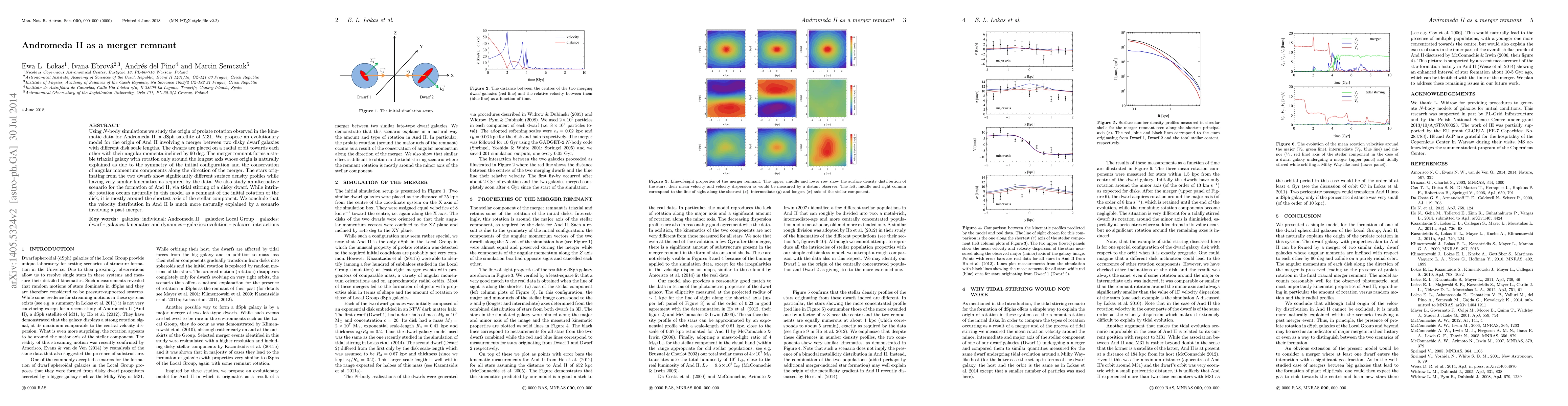 The paper proposes that the prolate rotation in Andromeda II (And II) is best explained by a merger between two disky dwarf galaxies, rather than tidal stirring. The merger model naturally conserves angular momentum along the merger direction, resulting in stable triaxial rotation.
