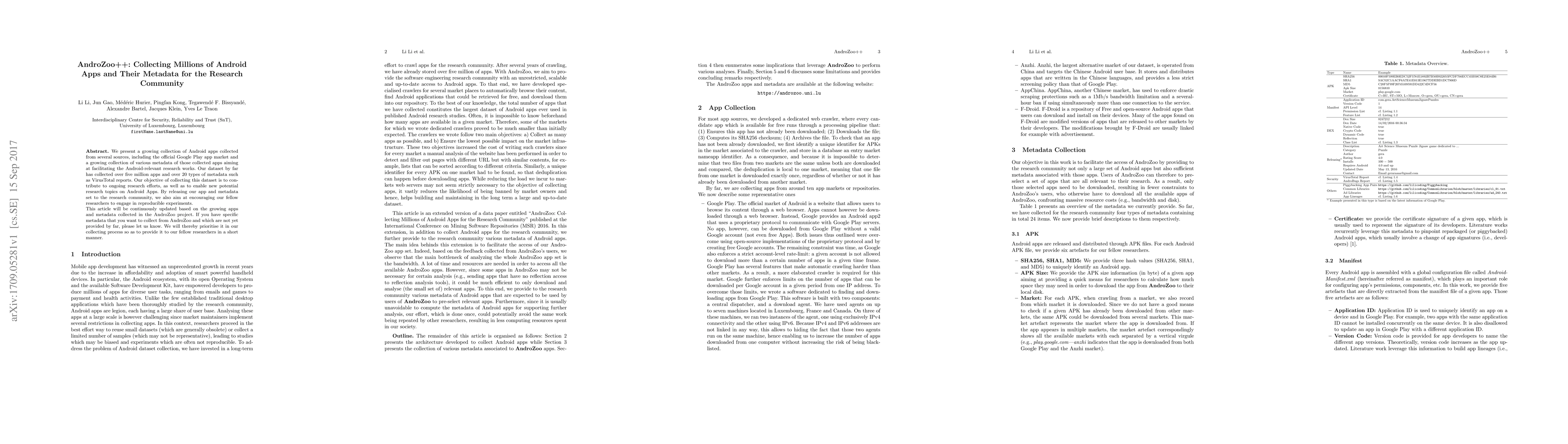 This paper introduces AndroZoo++, a comprehensive dataset of over five million Android apps and their metadata, sourced from Google Play and other platforms, to support Android research. The dataset aims to facilitate reproducible experiments and will be continuously updated to include new apps and metadata types.