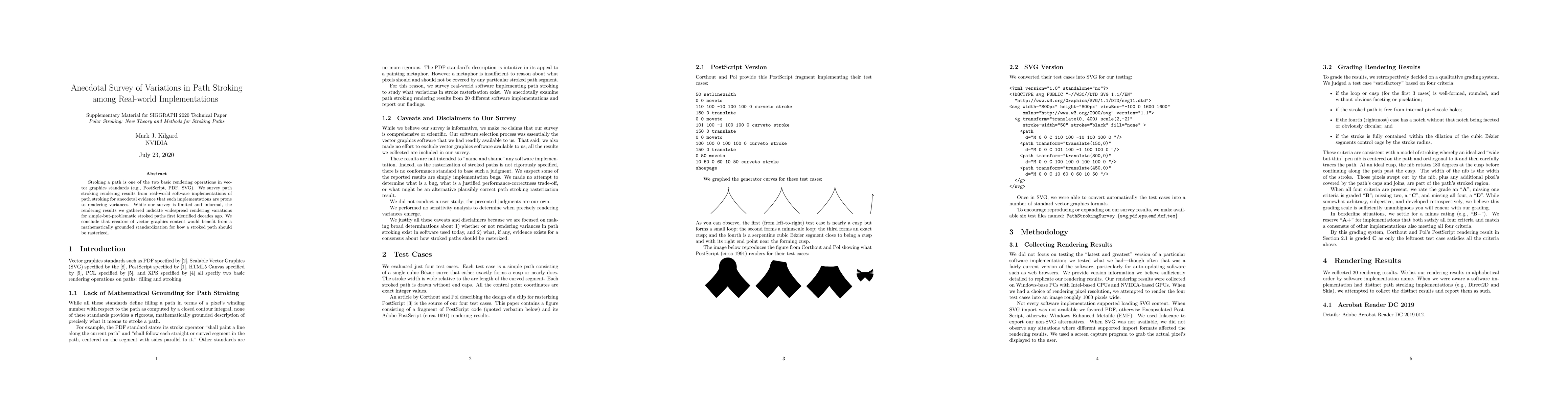 This paper surveys rendering variations in path stroking across real-world software implementations, revealing widespread discrepancies in how simple yet problematic paths are rendered. The authors suggest that a mathematically grounded standardization is needed to improve vector graphics content creation.