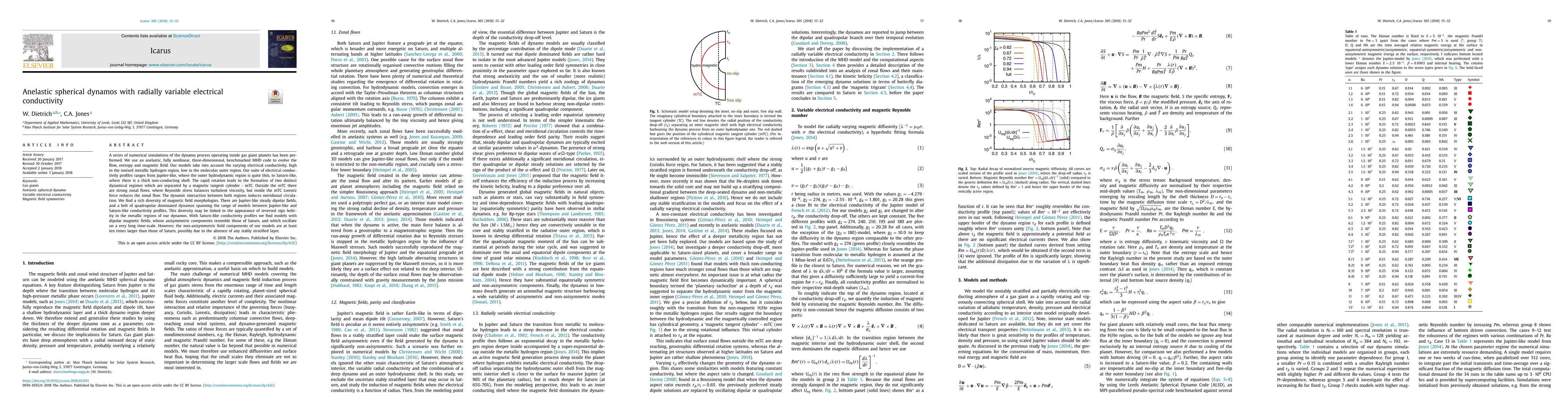 This paper presents numerical simulations of dynamo processes in gas giant planets, focusing on the impact of radially variable electrical conductivity on magnetic field generation. The study reveals diverse magnetic field morphologies, including steady dipolar fields and quadrupolar dominated dynamos, influenced by the planet's rotation and conductivity profiles.