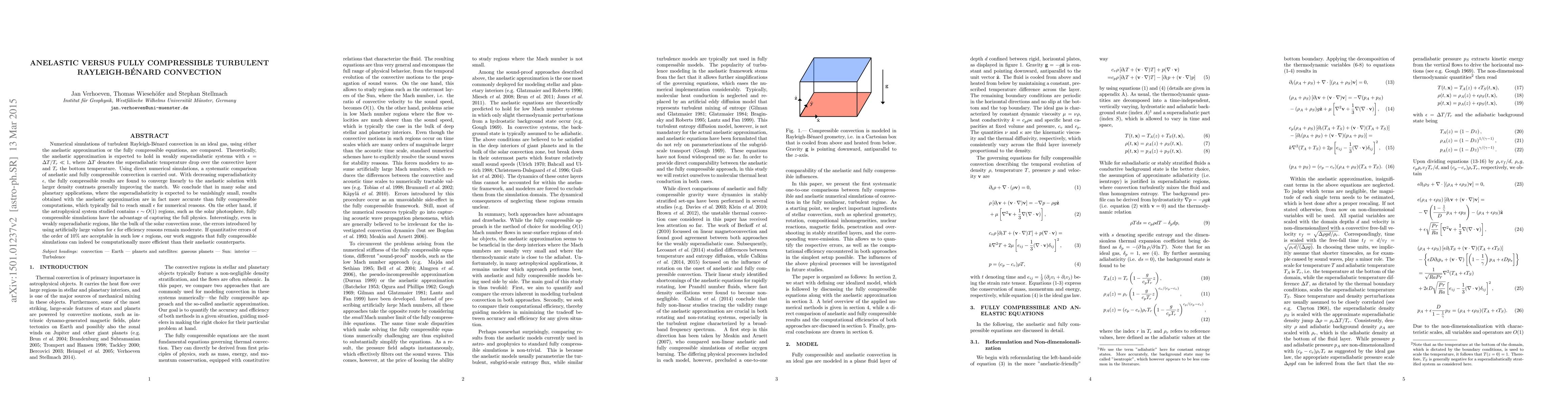 This study compares numerical simulations of turbulent Rayleigh-Bénard convection using the anelastic approximation versus fully compressible equations. It finds that anelastic simulations are more accurate for weakly superadiabatic systems, while fully compressible simulations are preferable for regions with significant density contrasts, though they can be more efficient if acceptable error margins are set.