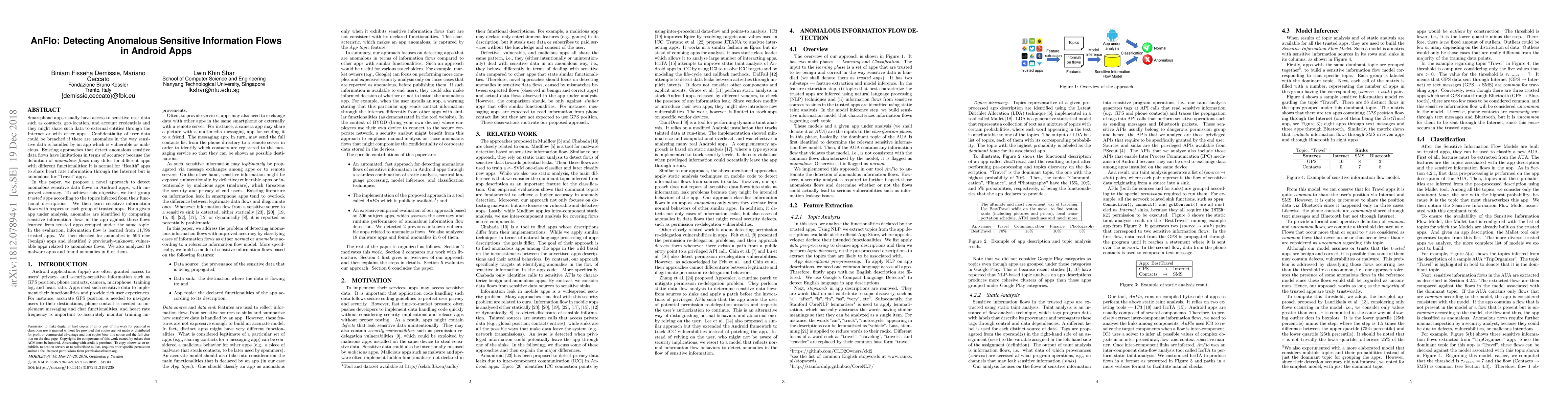 This paper proposes AnFlo, a novel method to detect anomalous sensitive information flows in Android apps by grouping trusted apps based on inferred functionalities and learning their normal data flows. Anomalies in new apps are identified by comparing their data flows against those learned from trusted apps within the same functional group.