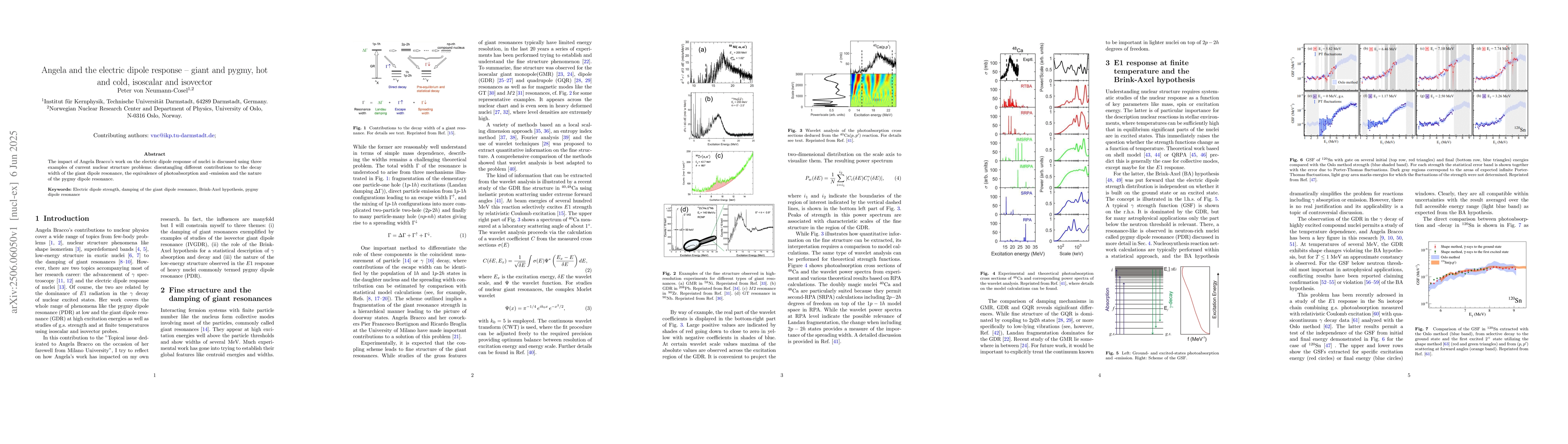 The impact of Angela Bracco's work on the electric dipole response of nuclei is discussed using three examples of current nuclear structure problems: disentangling different contributions to the decay width of the giant dipole resonance, the equivalence of photo-absorption and -emission and the nature of the pygmy dipole resonance.