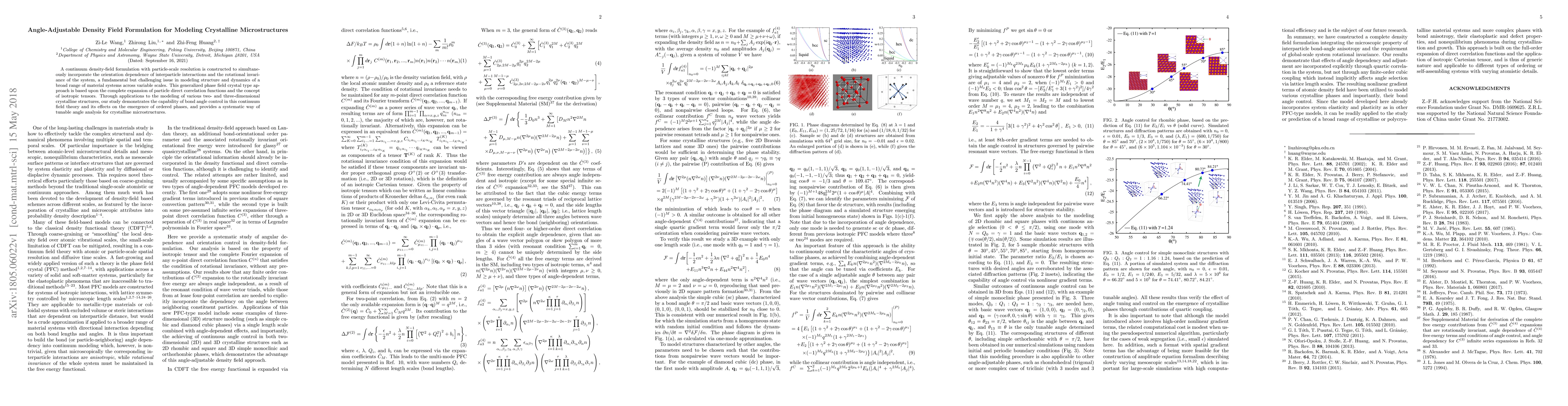 A continuum density-field formulation with particle-scale resolution is constructed to simultaneously incorporate the orientation dependence of interparticle interactions and the rotational invariance of the system, a fundamental but challenging issue in modeling structure and dynamics of a broad range of material systems across variable scales. This generalized phase field crystal type approach is based upon the complete expansion of particle direct correlation functions and the concept of isotropic tensors. Through applications to the modeling of various two- and three-dimensional crystalline structures, our study demonstrates the capability of bond angle control in this continuum field theory and its effects on the emergence of ordered phases, and provides a systematic way of tunable angle analysis for crystalline microstructures.