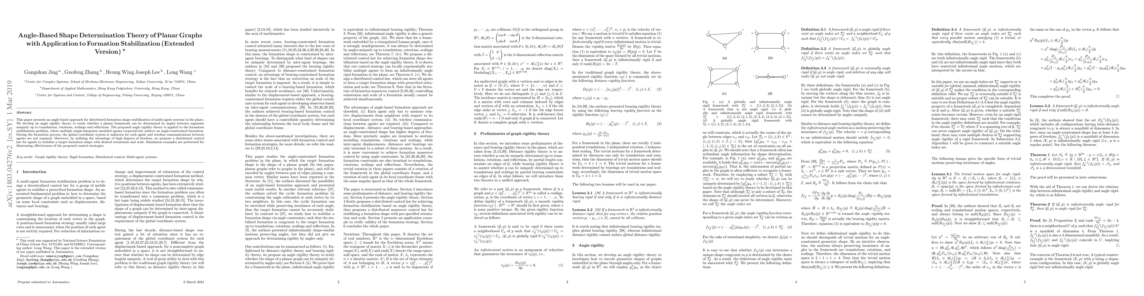 This paper presents an angle-based approach for distributed formation shape stabilization of multi-agent systems in the plane. We develop an angle rigidity theory to study whether a planar framework can be determined by angles between segments uniquely up to translations, rotations, scalings and reflections. The proposed angle rigidity theory is applied to the formation stabilization problem, where multiple single-integrator modeled agents cooperatively achieve an angle-constrained formation. During the formation process, the global coordinate system is unknown for each agent and wireless communications between agents are not required. Moreover, by utilizing the advantage of high degrees of freedom, we propose a distributed control law for agents to stabilize a target formation shape with desired orientation and scale. Simulation examples are performed for illustrating effectiveness of the proposed control strategies.