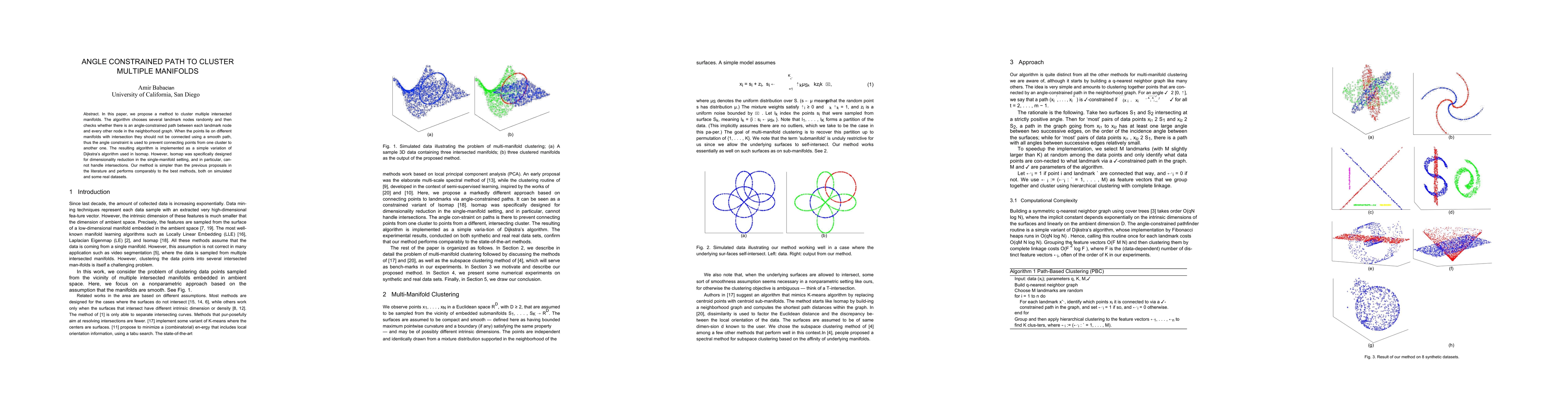 In this paper, we propose a method to cluster multiple intersected manifolds. The algorithm chooses several landmark nodes randomly and then checks whether there is an angle constrained path between each landmark node and every other node in the neighborhood graph. When the points lie on different manifolds with intersection they should not be connected using a smooth path, thus the angle constraint is used to prevent connecting points from one cluster to another one. The resulting algorithm is implemented as a simple variation of Dijkstras algorithm used in Isomap. However, Isomap was specifically designed for dimensionality reduction in the single-manifold setting, and in particular, can-not handle intersections. Our method is simpler than the previous proposals in the literature and performs comparably to the best methods, both on simulated and some real datasets.