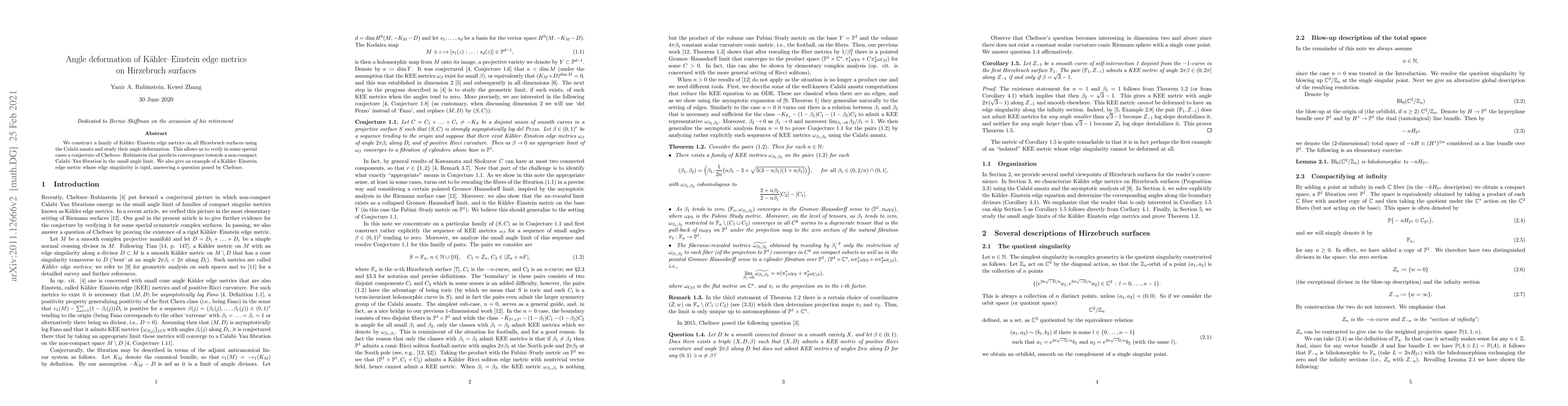 This paper constructs Kähler-Einstein edge metrics on Hirzebruch surfaces and studies their angle deformation, verifying a conjecture on convergence towards a non-compact Calabi-Yau fibration in special cases. It also provides an example of a rigid Kähler-Einstein edge metric.