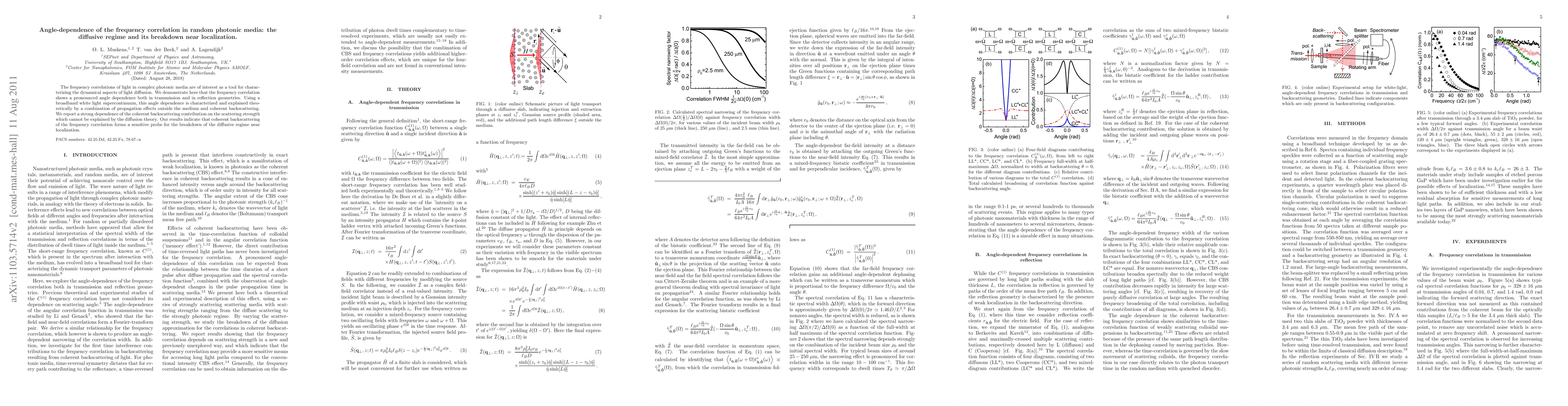 This paper investigates the angle-dependent frequency correlations of light in complex photonic media, revealing significant angle dependence in both transmission and reflection. Theoretical explanations involve propagation effects and coherent backscattering, highlighting the latter's strong dependence on scattering strength and its role in detecting the breakdown of the diffusive regime near localization.