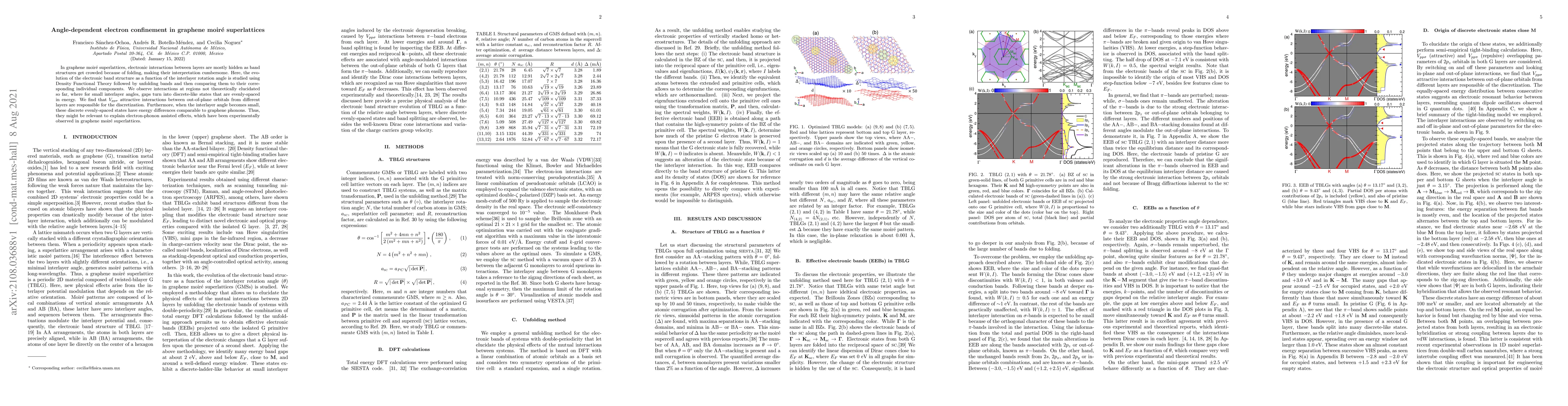 This paper investigates the angle-dependent electronic band structure in graphene moir\'e superlattices using Density Functional Theory, revealing previously unobserved interactions and discrete energy states formed by $V_{pp\sigma}$ attractive interactions. These states, appearing at small interlayer angles, may explain electron-phonon-assisted effects observed experimentally.