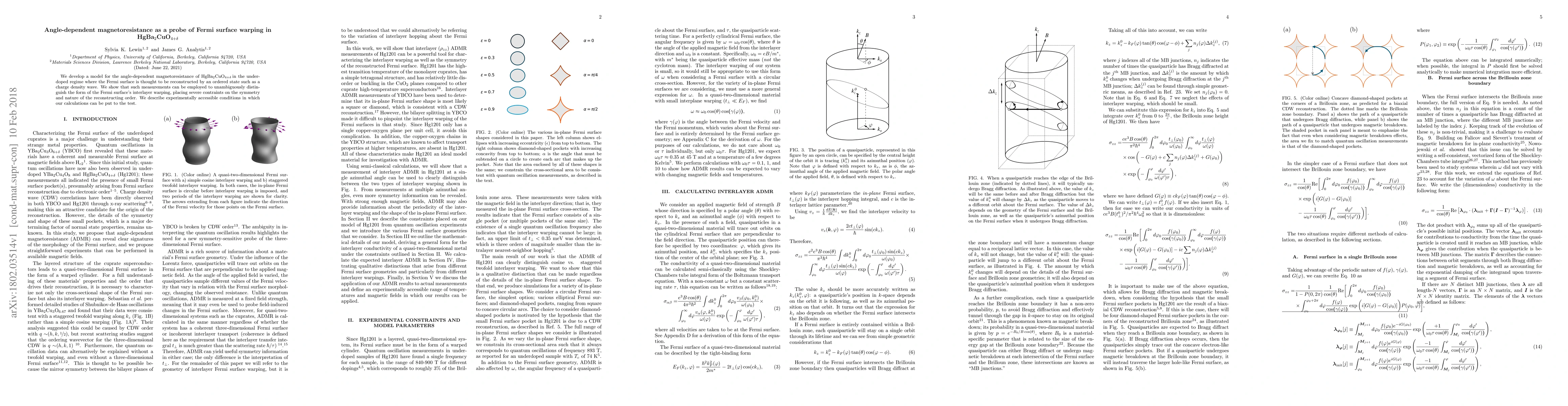 Researchers develop a model to measure angle-dependent magnetoresistance in HgBa2CuO4+δ to probe Fermi surface warping, providing new constraints on the symmetry and nature of reconstructing orders.