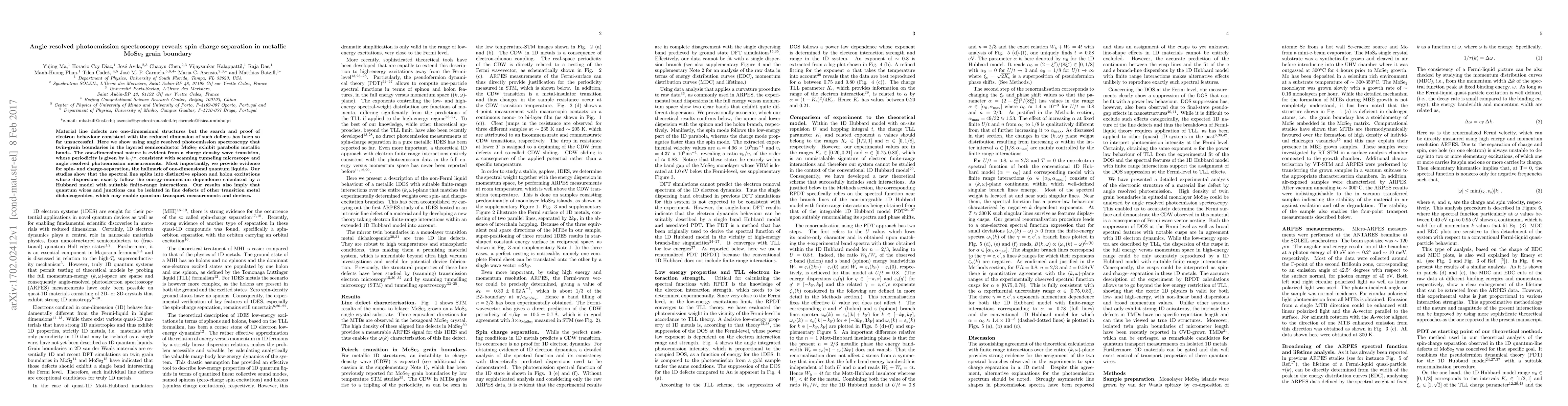 Material line defects are one-dimensional structures but the search and proof of electron behaviour consistent with the reduced dimension of such defects has been so far unsuccessful. Here we show using angle resolved photoemission spectroscopy that twin-grain boundaries in the layered semiconductor MoSe2 exhibit parabolic metallic bands. The one-dimensional nature is evident from a charge density wave transition, whose periodicity is given by kF/{\pi}, consistent with scanning tunneling microscopy and angle resolved photoemission measurements. Most importantly, we provide evidence for spin- and charge-separation, the hallmark of one-dimensional quantum liquids. Our studies show that the spectral line splits into distinctive spinon and holon excitations whose dispersions exactly follow the energy-momentum dependence calculated by a Hubbard model with suitable finite-range interactions. Our results also imply that quantum wires and junctions can be isolated in line defects of other transition metal dichalcogenides, which may enable quantum transport measurements and devices.