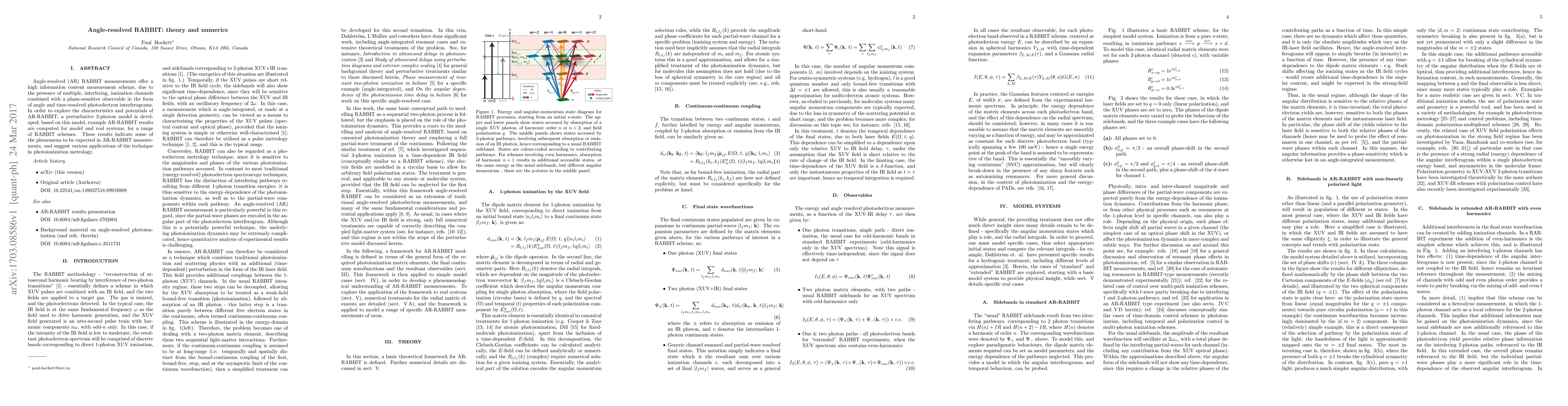 Angle-resolved (AR) RABBIT measurements offer a high information content measurement scheme, due to the presence of multiple, interfering, ionization channels combined with a phase-sensitive observable in the form of angle and time-resolved photoelectron interferograms. In order to explore the characteristics and potentials of AR-RABBIT, a perturbative 2-photon model is developed; based on this model, example AR-RABBIT results are computed for model and real systems, for a range of RABBIT schemes. These results indicate some of the phenomena to be expected in AR-RABBIT measurements, and suggest various applications of the technique in photoionization metrology.