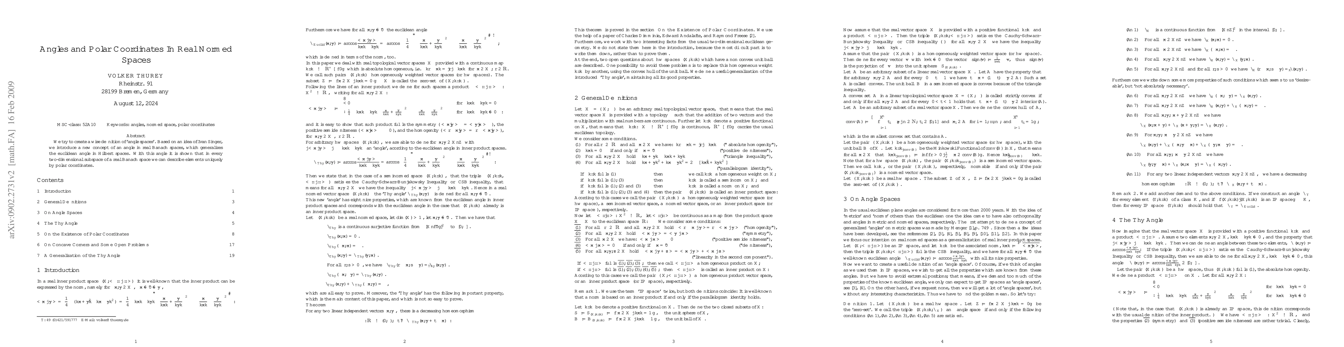 We try to create a wise definition of 'angle spaces'. Based on an idea of Ivan Singer, we introduce a new concept of an angle in real Banach spaces, which generalizes the euclidean angle in Hilbert spaces. With this angle it is shown that in every two-dimensional subspace of a real Banach space we can describe elements uniquely by polar coordinates.