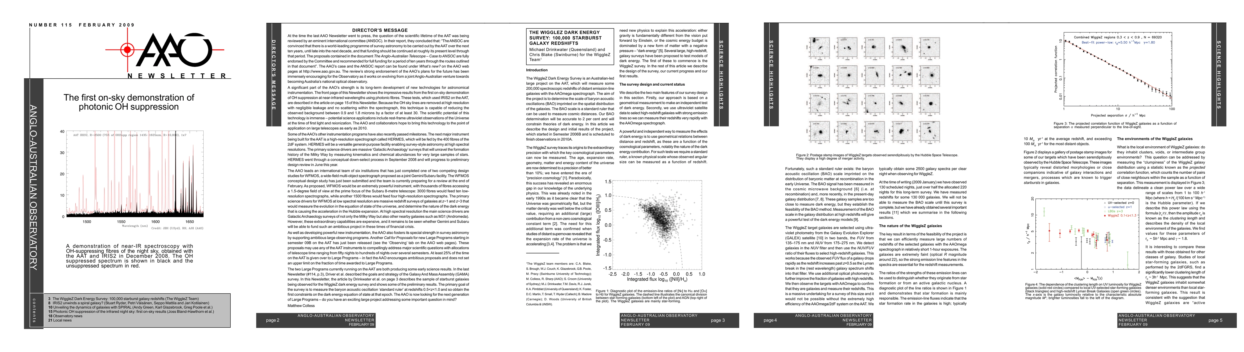 The February 2009 edition of the AAO newsletter contains articles on the preliminary results from the WiggleZ dark energy survey, the analysis of near-IR observations of the galaxy IRAS18293-3413, the early results from the SPIRAL IFU investigation of the dynamics of a sample of nearby star forming galaxies, a summary of the successful outcome of the first on-sky test of photonic OH suppression and a number of regular features.