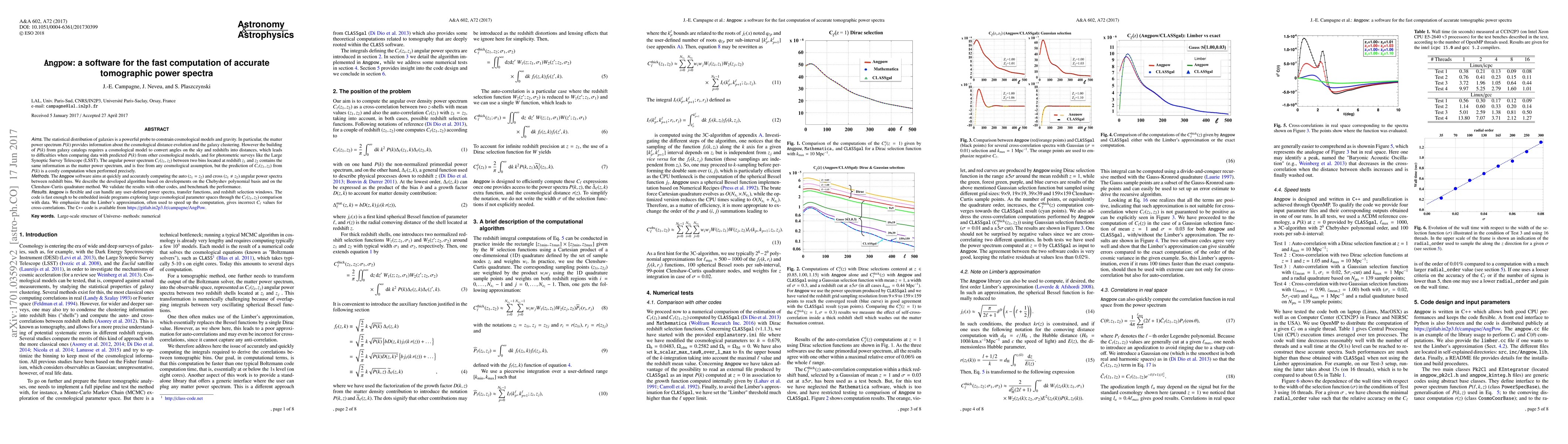 The statistical distribution of galaxies is a powerful probe to constrain cosmological models and gravity. In particular the matter power spectrum $P(k)$ brings information about the cosmological distance evolution and the galaxy clustering together. However the building of $P(k)$ from galaxy catalogues needs a cosmological model to convert angles on the sky and redshifts into distances, which leads to difficulties when comparing data with predicted $P(k)$ from other cosmological models, and for photometric surveys like LSST. The angular power spectrum $C_\ell(z_1,z_2)$ between two bins located at redshift $z_1$ and $z_2$ contains the same information than the matter power spectrum, is free from any cosmological assumption, but the prediction of $C_\ell(z_1,z_2)$ from $P(k)$ is a costly computation when performed exactly. The Angpow software aims at computing quickly and accurately the auto ($z_1=z_2$) and cross ($z_1 \neq z_2$) angular power spectra between redshift bins. We describe the developed algorithm, based on developments on the Chebyshev polynomial basis and on the Clenshaw-Curtis quadrature method. We validate the results with other codes, and benchmark the performance. Angpow is flexible and can handle any user defined power spectra, transfer functions, and redshift selection windows. The code is fast enough to be embedded inside programs exploring large cosmological parameter spaces through the $C_\ell(z_1,z_2)$ comparison with data. We emphasize that the Limber's approximation, often used to fasten the computation, gives wrong $C_\ell$ values for cross-correlations.