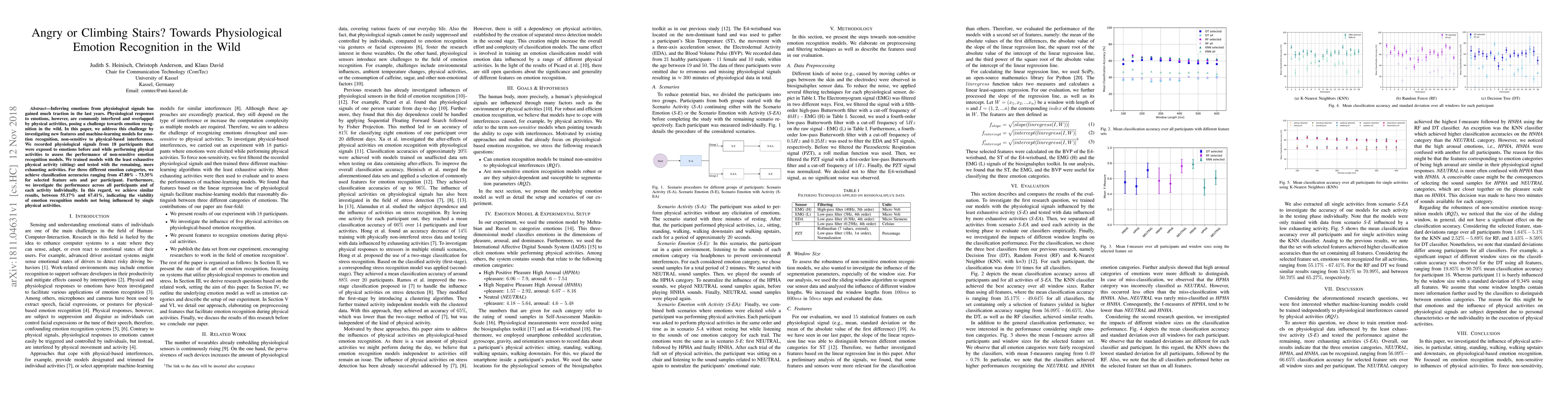 The paper presents novel methods for feature extraction and machine learning models to create non-sensitive emotion recognition systems, addressing the challenge of physical activity interference in physiological signal-based emotion recognition.