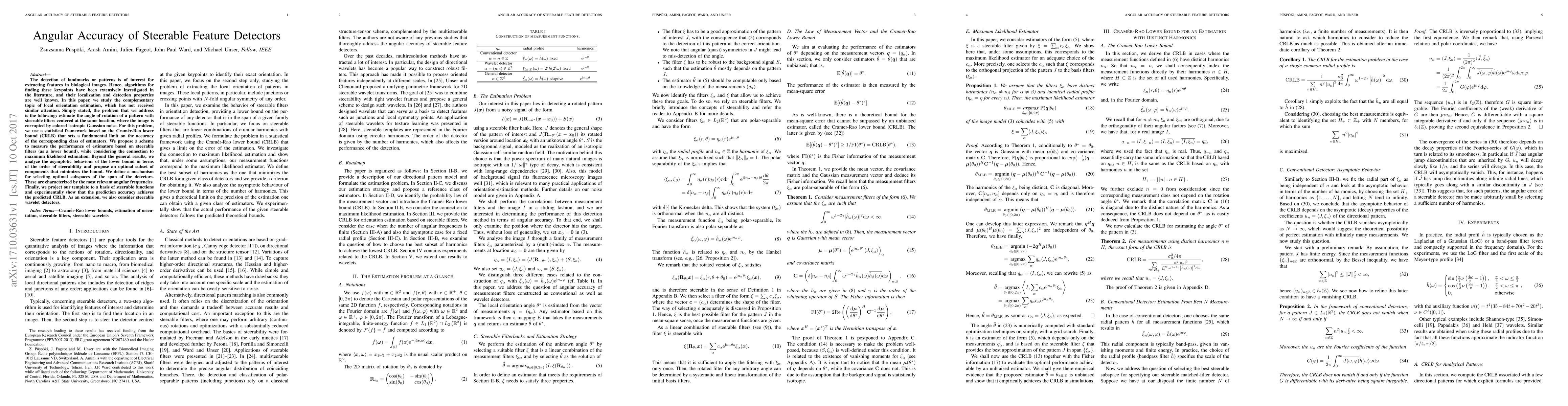 The detection of landmarks or patterns is of interest for extracting features in biological images. Hence, algorithms for finding these keypoints have been extensively investigated in the literature, and their localization and detection properties are well known. In this paper, we study the complementary topic of local orientation estimation, which has not received similar attention. Simply stated, the problem that we address is the following: estimate the angle of rotation of a pattern with steerable filters centered at the same location, where the image is corrupted by colored isotropic Gaussian noise. For this problem, we use a statistical framework based on the Cram\'{e}r-Rao lower bound (CRLB) that sets a fundamental limit on the accuracy of the corresponding class of estimators. We propose a scheme to measure the performance of estimators based on steerable filters (as a lower bound), while considering the connection to maximum likelihood estimation. Beyond the general results, we analyze the asymptotic behaviour of the lower bound in terms of the order of steerablility and propose an optimal subset of components that minimizes the bound. We define a mechanism for selecting optimal subspaces of the span of the detectors. These are characterized by the most relevant angular frequencies. Finally, we project our template to a basis of steerable functions and experimentally show that the prediction accuracy achieves the predicted CRLB. As an extension, we also consider steerable wavelet detectors.