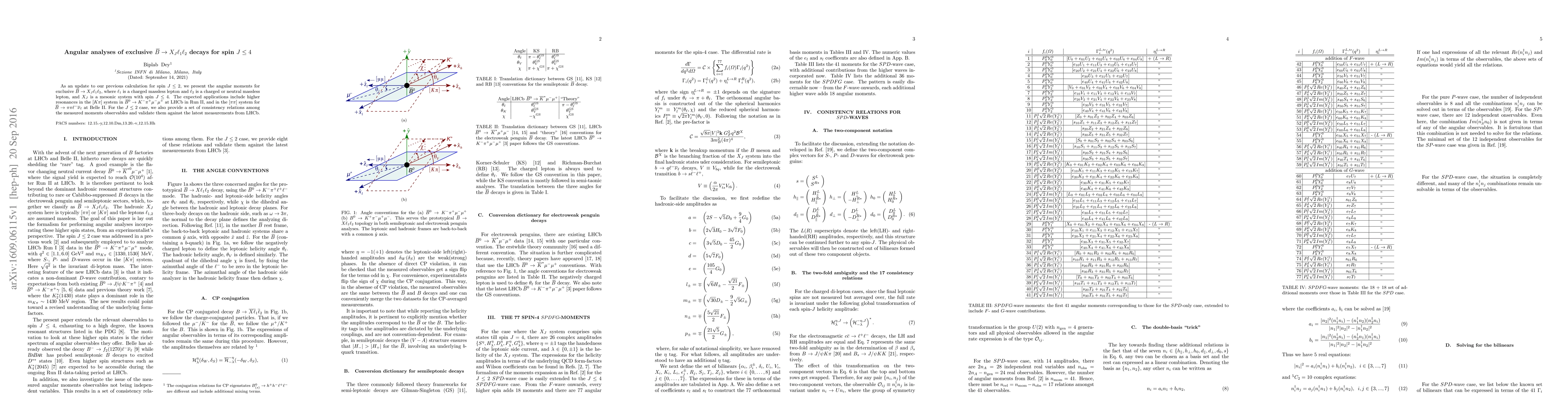 As an update to our previous calculation for spin $J\leq2$, we present the angular moments for exclusive $\overline{B} \to X_J \ell_1 \ell_2$, where $\ell_1$ is a charged massless lepton and $\ell_2$ is a charged or neutral massless lepton, and $X_J$ is a mesonic system with spin $J\leq4$. The expected applications include higher resonances in the $[K\pi]$ system in $\overline{B}^0 \to K^- \pi^+ \mu^- \mu^+$ at LHCb in Run~II, and in the $[\pi \pi]$ system for $ \overline{B} \to \pi \pi \ell^- \bar{\nu}_\ell$ at Belle~II. For the $J\leq2$ case, we also provide a set of consistency relations among the measured moments observables and validate them against the latest measurements from LHCb.