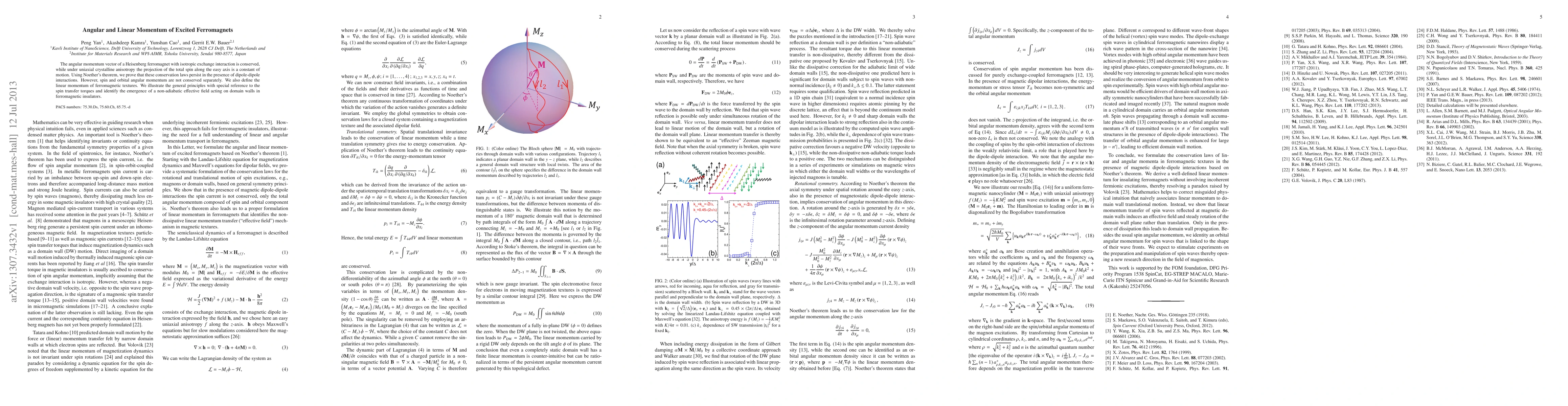 Researchers prove that angular momentum is conserved in ferromagnets with certain interactions, while linear momentum is not, under the influence of dipole-dipole interactions.