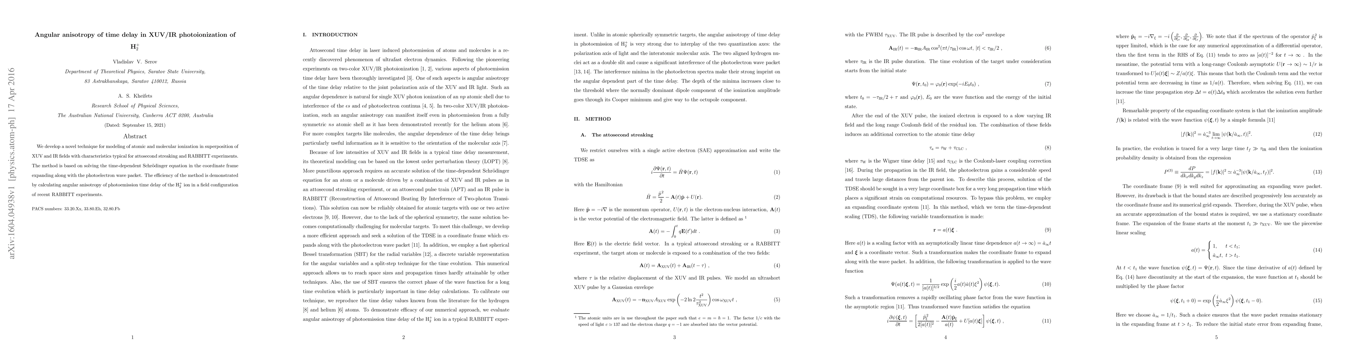 Researchers developed a new technique to model XUV/IR photoionization of H$_2^+$ ions, revealing the angular anisotropy of time delay in photoemission, a key finding relevant to recent RABBITT experiments.