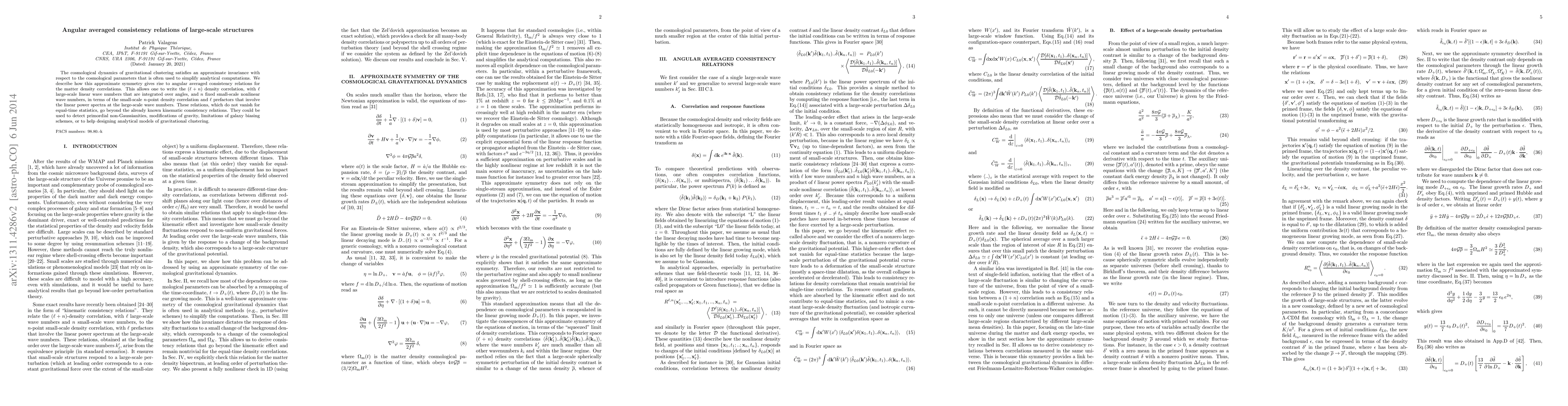 This paper explores the approximate symmetry in cosmological dynamics that leads to angular averaged consistency relations for matter density correlations, providing a new framework for understanding large-scale structure formation and potentially detecting primordial non-Gaussianities and modifications of gravity.