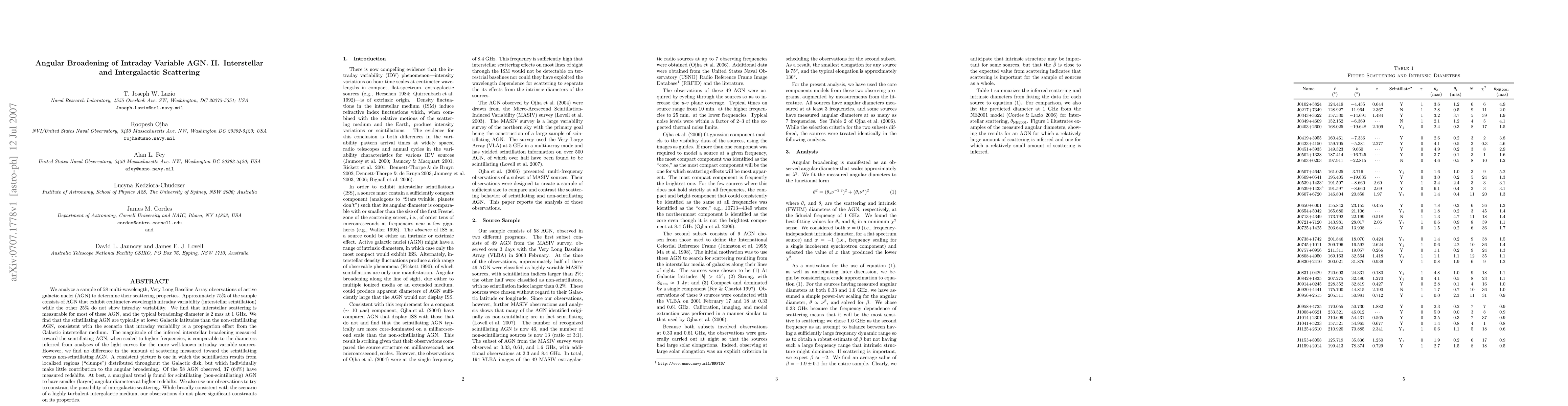 We analyze a sample of 58 multi-wavelength, Very Long Baseline Array observations of active galactic nuclei (AGN) to determine their scattering properties. Approximately 75% of the sample consists of AGN that exhibit centimeter-wavelength intraday variability (interstellar scintillation) while the other 25% do not show intraday variability. We find that interstellar scattering is measurable for most of these AGN, and the typical broadening diameter is 2 mas at 1 GHz. We find that the scintillating AGN are typically at lower Galactic latitudes than the non-scintillating AGN, consistent with the scenario that intraday variability is a propagation effect from the Galactic interstellar medium. The magnitude of the inferred interstellar broadening measured toward the scintillating AGN, when scaled to higher frequencies, is comparable to the diameters inferred from analyses of the light curves for the more well-known intraday variable sources. However, we find no difference in the amount of scattering measured toward the scintillating versus non-scintillating AGN. A consistent picture is one in which the scintillation results from localized regions ("clumps") distributed throughout the Galactic disk, but which individually make little contribution to the angular broadening. Of the 58 AGN observed, 37 (64%) have measured redshifts. At best, a marginal trend is found for scintillating (non-scintillating) AGN to have smaller (larger) angular diameters at higher redshifts. We also use our observations to try to constrain the possibility of intergalactic scattering. While broadly consistent with the scenario of a highly turbulent intergalactic medium, our observations do not place significant constraints on its properties.
