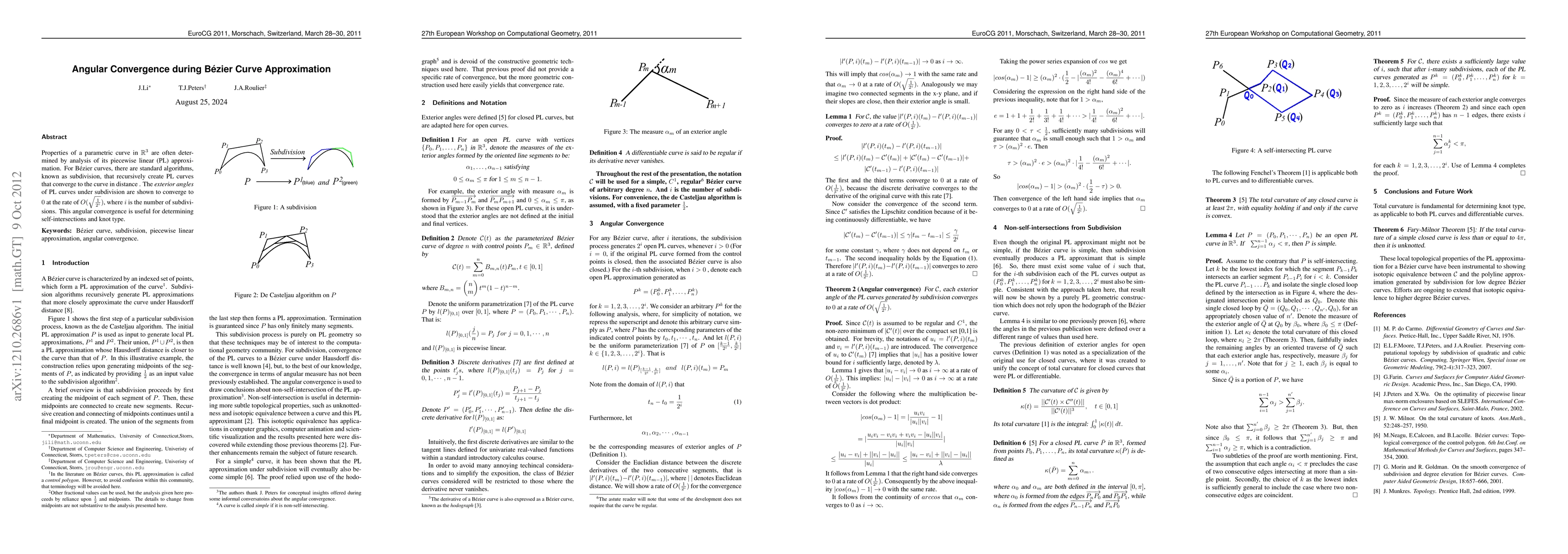 The paper presents a novel analysis of angular convergence during Bézier curve approximation via subdivision, providing a rate of convergence for exterior angles of PL curves.