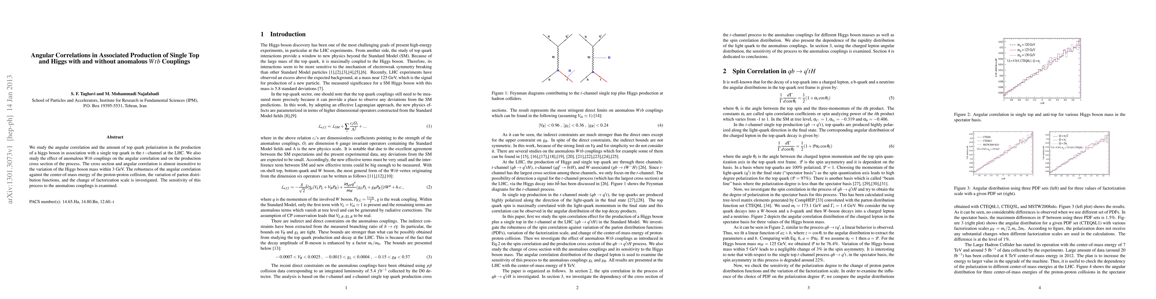 We study the angular correlation and the amount of top quark polarization in the production of a higgs boson in association with a single top quark in the $t-$channel at the LHC. We also study the effect of anomalous $Wtb$ couplings on the angular correlation and on the production cross section of the process. The cross section and angular correlation is almost insensitive to the variation of the Higgs boson mass within 3 GeV. The robustness of the angular correlation against the center-of-mass energy of the proton-proton collision, the variation of parton distribution functions, and the change of factorization scale is investigated. The sensitivity of this process to the anomalous couplings is examined.