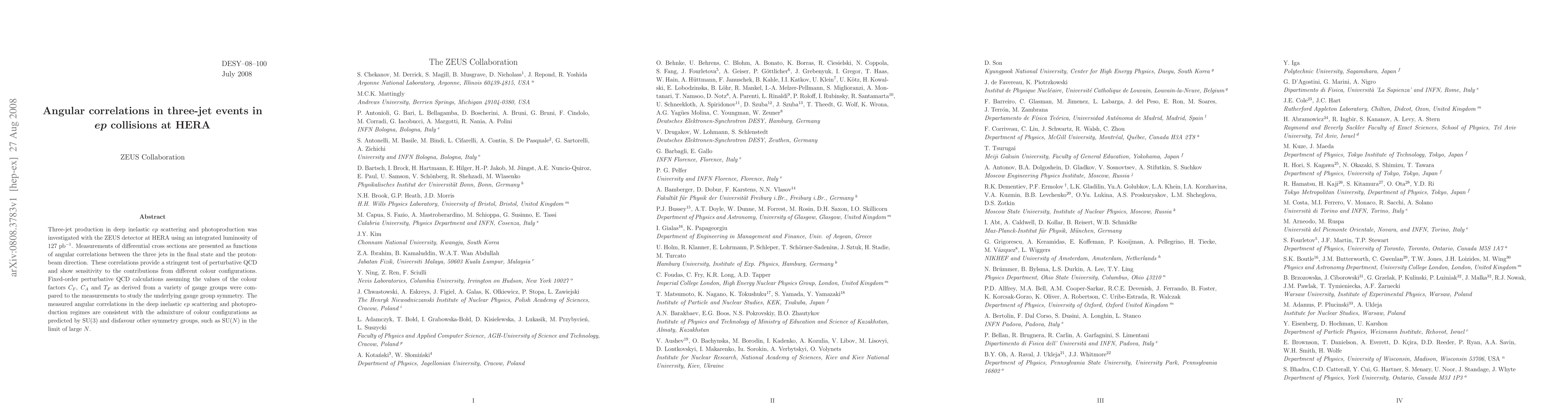This paper investigates angular correlations in three-jet events from ep collisions at HERA, using the ZEUS detector. The results provide strong evidence supporting SU(3) gauge group symmetry over other large N symmetry groups, as they align with the predicted colour configurations.