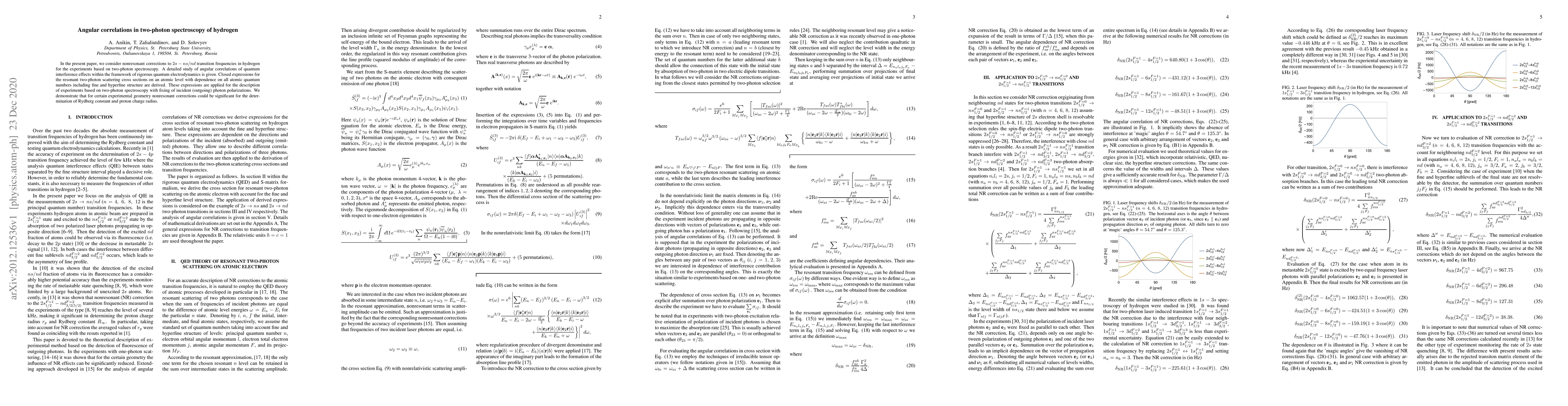 This paper investigates nonresonant corrections to $2s-ns/nd$ transition frequencies in hydrogen using two-photon spectroscopy, deriving closed expressions for resonant two-photon scattering cross sections. The study highlights the significance of angular correlations and nonresonant corrections in determining the Rydberg constant and proton charge radius.