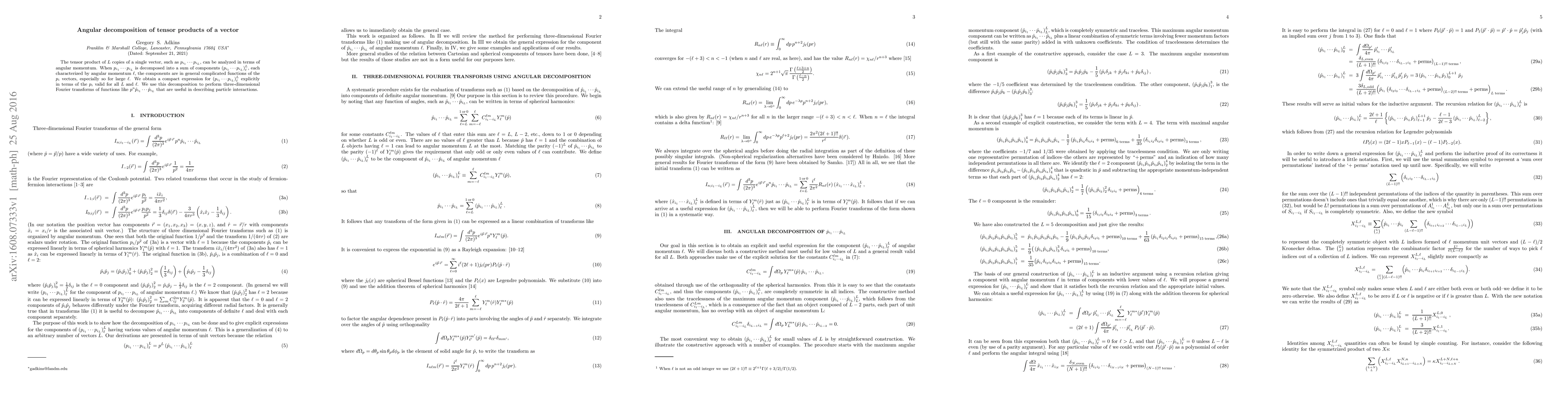 Researchers developed a compact expression for decomposing tensor products of vectors into angular momentum components, enabling efficient analysis of particle interactions. This method has implications for understanding three-dimensional Fourier transforms in physics.