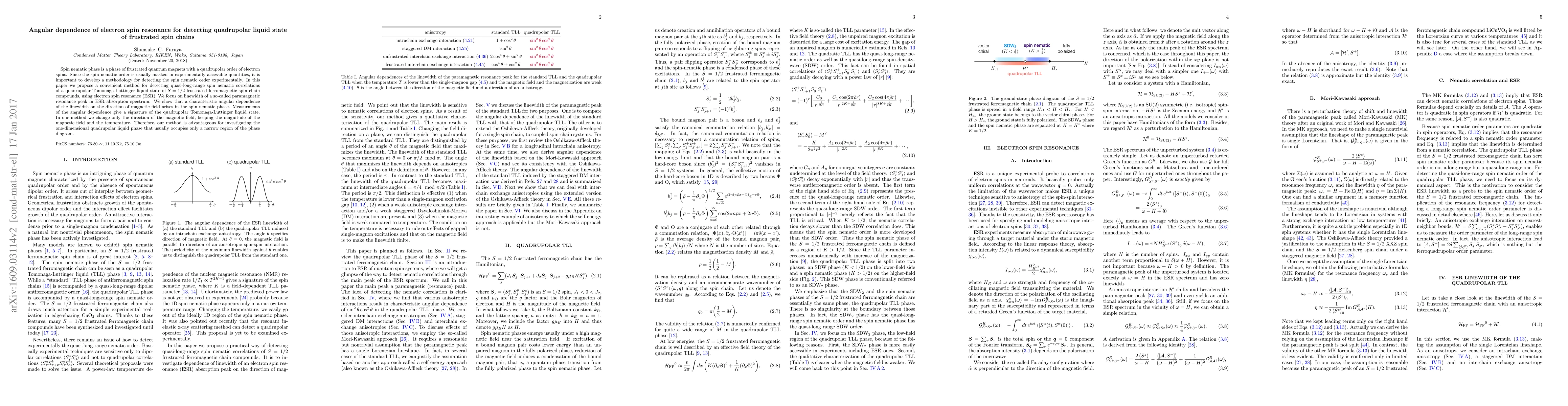 This paper proposes a method using electron spin resonance (ESR) to detect the spin nematic phase in frustrated spin chains by analyzing the angular dependence of the linewidth of ESR absorption peaks. The study reveals that the linewidth varies with the magnetic field direction, providing a signature of the quadrupolar Tomonaga-Luttinger liquid state.