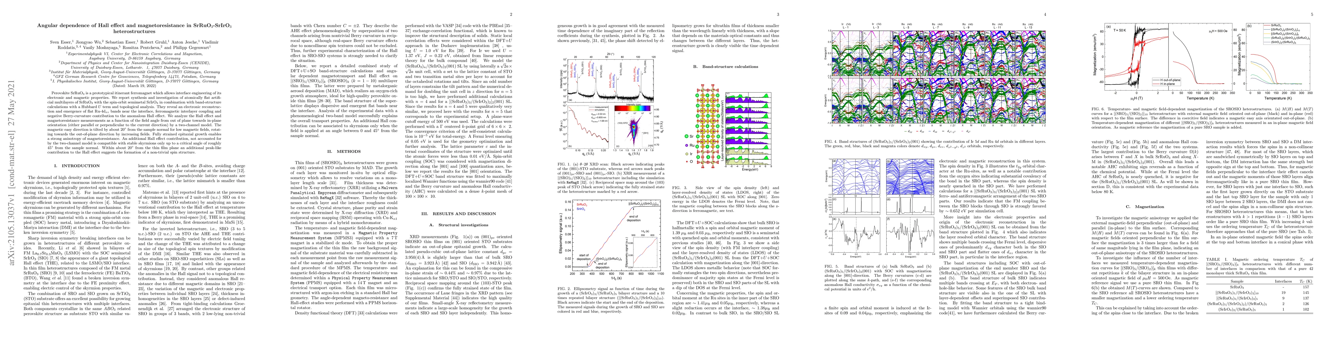 This study investigates SrRuO$_3$-SrIrO$_3$ heterostructures, revealing electronic reconstruction and a negative Berry-curvature contribution to the anomalous Hall effect. The Hall effect and magnetoresistance are analyzed across varying magnetic field angles, showing a shift in the magnetic easy axis and indicating skyrmion stability up to a $45^\circ$ angle.