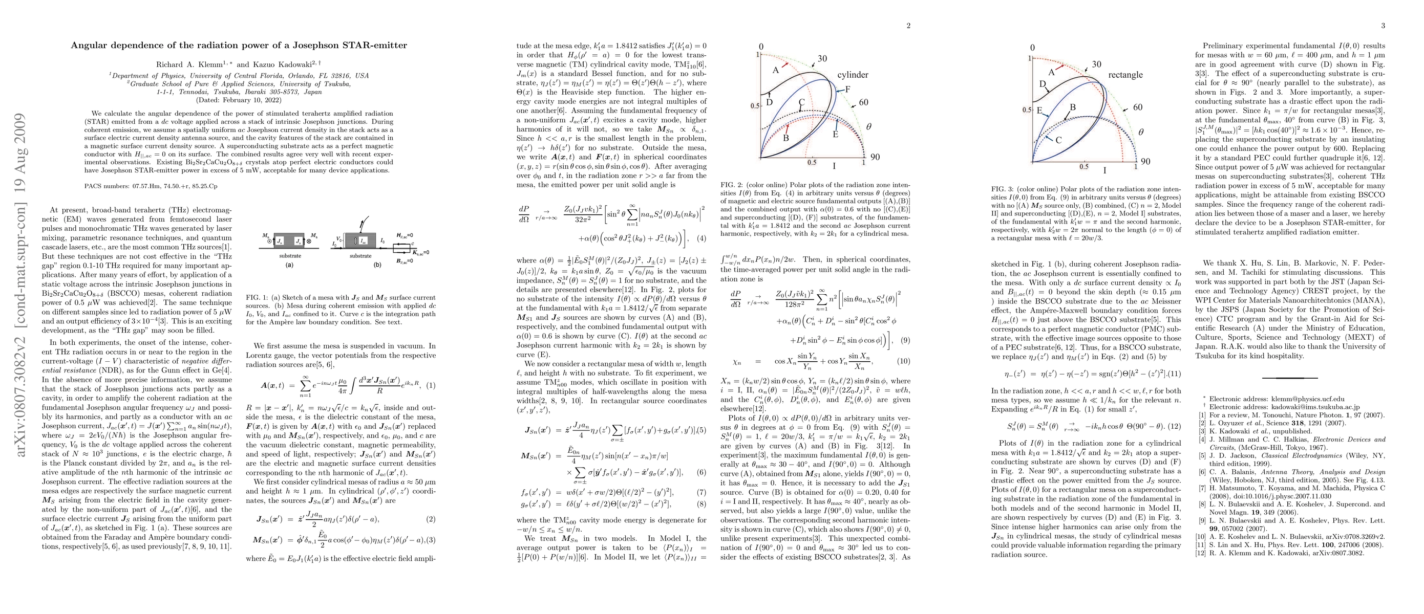We calculate the angular dependence of the power of stimulated terahertz amplified radiation (STAR) emitted from a $dc$ voltage applied across a stack of intrinsic Josephson junctions. During coherent emission, we assume a spatially uniform $ac$ Josephson current density in the stack acts as a surface electric current density antenna source, and the cavity features of the stack are contained in a magnetic surface current density source. A superconducting substrate acts as a perfect magnetic conductor with $H_{||,ac}=0$ on its surface. The combined results agree very well with recent experimental observations. Existing Bi$_2$Sr$_2$CaCu$_2$O$_{8+\delta}$ crystals atop perfect electric conductors could have Josephson STAR-emitter power in excess of 5 mW, acceptable for many device applications.