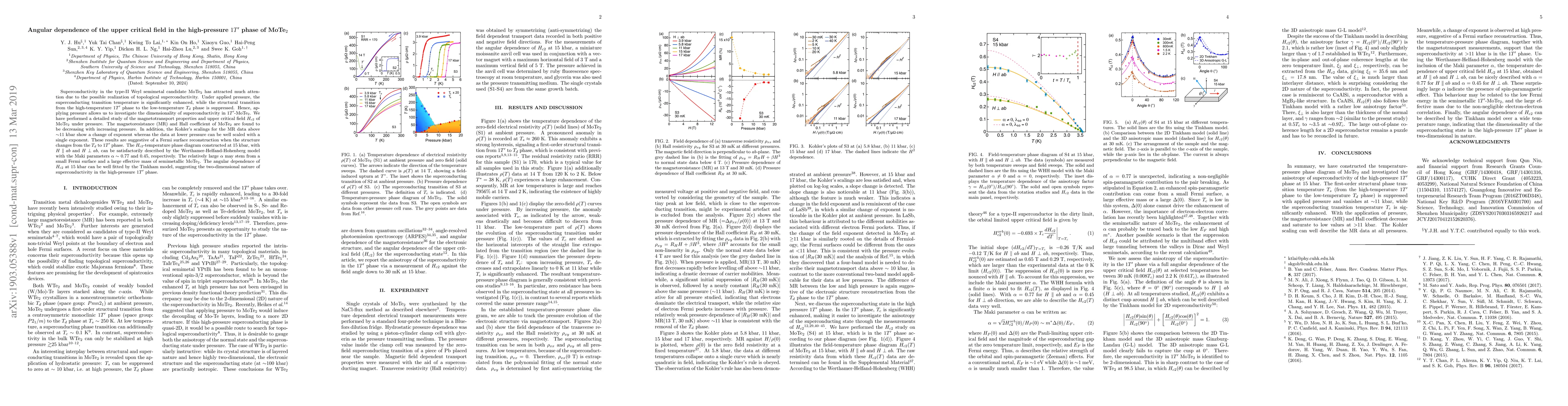 This study investigates the angular dependence of the upper critical field $H_{c2}$ in the high-pressure $1T'$ phase of MoTe$_2$, revealing a two-dimensional nature of superconductivity. The research finds that the $H_{c2}$-temperature phase diagram aligns with the Werthamer-Helfand-Hohenberg model, indicating a small Fermi surface and large effective mass.