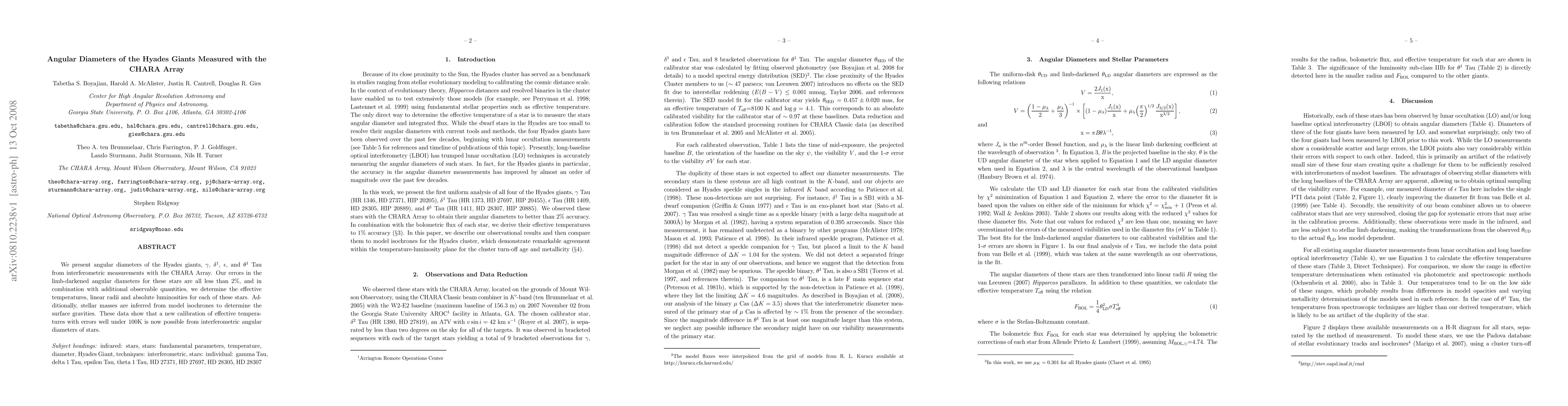 This study measures the angular diameters of the Hyades giants using the CHARA Array, achieving less than 2% error. These measurements, combined with other observables, allow for precise determination of effective temperatures, radii, luminosities, and inferred masses, enabling a new calibration of effective temperatures.