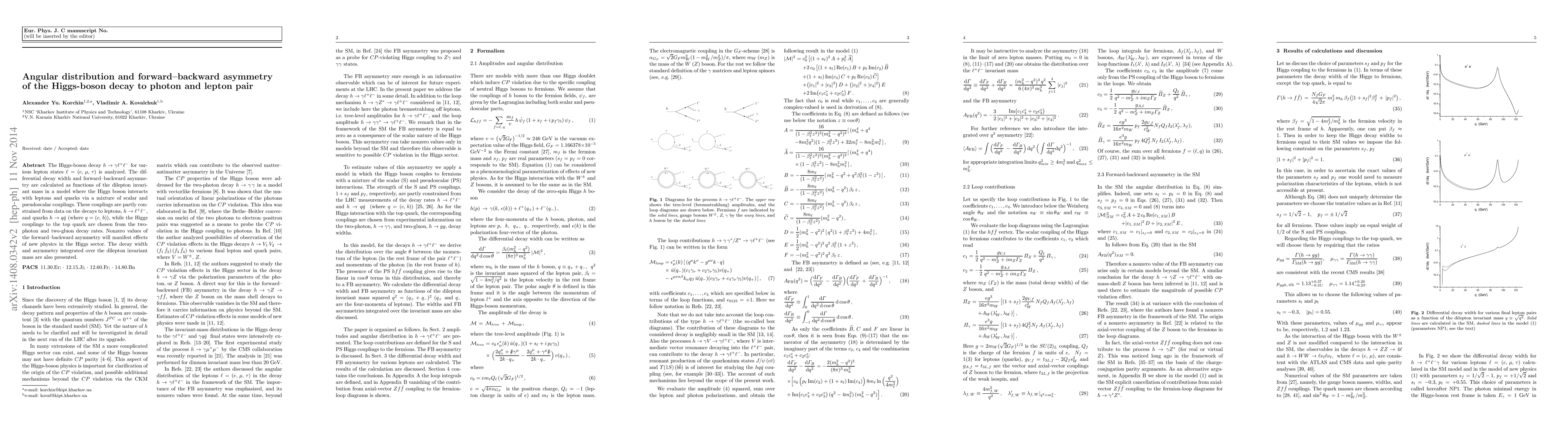 This paper analyzes the Higgs-boson decay into a photon and a lepton pair, examining the angular distribution and forward-backward asymmetry for different lepton states. The study explores a model with mixed scalar and pseudoscalar Higgs couplings, partially constrained by existing decay data, and highlights how nonzero asymmetries could indicate new physics.