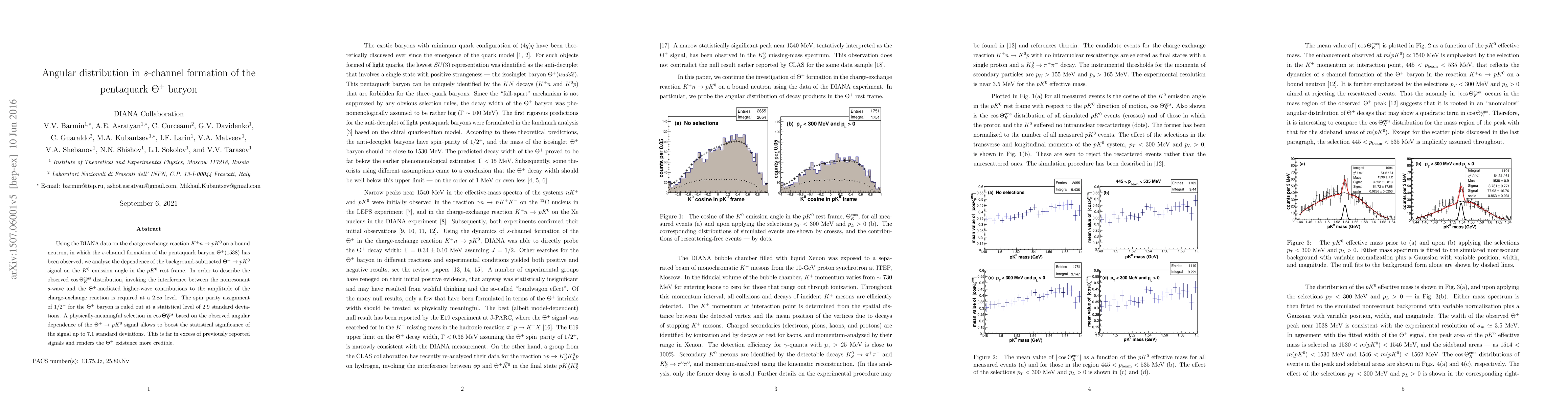 Using the DIANA data on the charge-exchange reaction $K^+n \rightarrow pK^0$ on a bound neutron, in which the s-channel formation of the pentaquark baryon $\Theta^+(1538)$ has been observed, we analyze the dependence of the background-subtracted $\Theta^+ \rightarrow pK^0$ signal on the $K^0$ emission angle in the $pK^0$ rest frame. In order to describe the observed $\cos\Theta_K^\mathrm{cms}$ distribution, invoking the interference between the nonresonant s-wave and the $\Theta^+$-mediated higher-wave contributions to the amplitude of the charge-exchange reaction is required at a 2.8$\sigma$ level. The spin--parity assignment of 1/2$^-$ for the $\Theta^+$ baryon is ruled out at a statistical level of 2.9 standard deviations. A physically-meaningful selection in $\cos\Theta_K^\mathrm{cms}$ based on the observed angular dependence of the $\Theta^+ \rightarrow pK^0$ signal allows to boost the statistical significance of the signal up to 7.1 standard deviations. This is far in excess of previously reported signals and renders the $\Theta^+$ existence more credible.