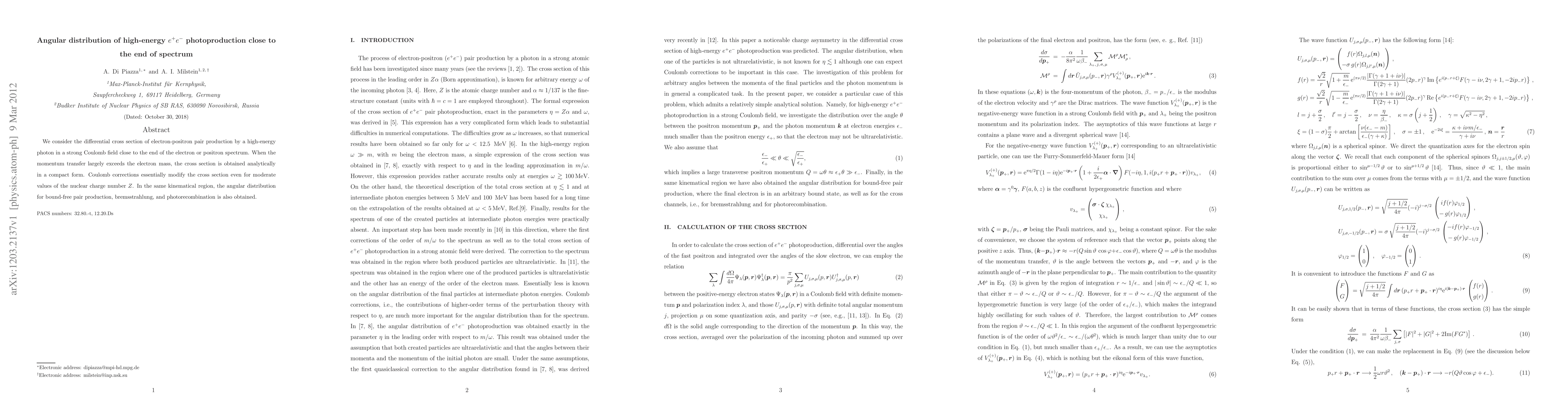 This paper analytically derives the differential cross section for high-energy photon-induced electron-positron pair production in a strong Coulomb field, focusing on the end of the spectrum where momentum transfer is significant. It highlights the impact of Coulomb corrections on the cross section and provides angular distributions for various processes including pair production, bremsstrahlung, and photorecombination.