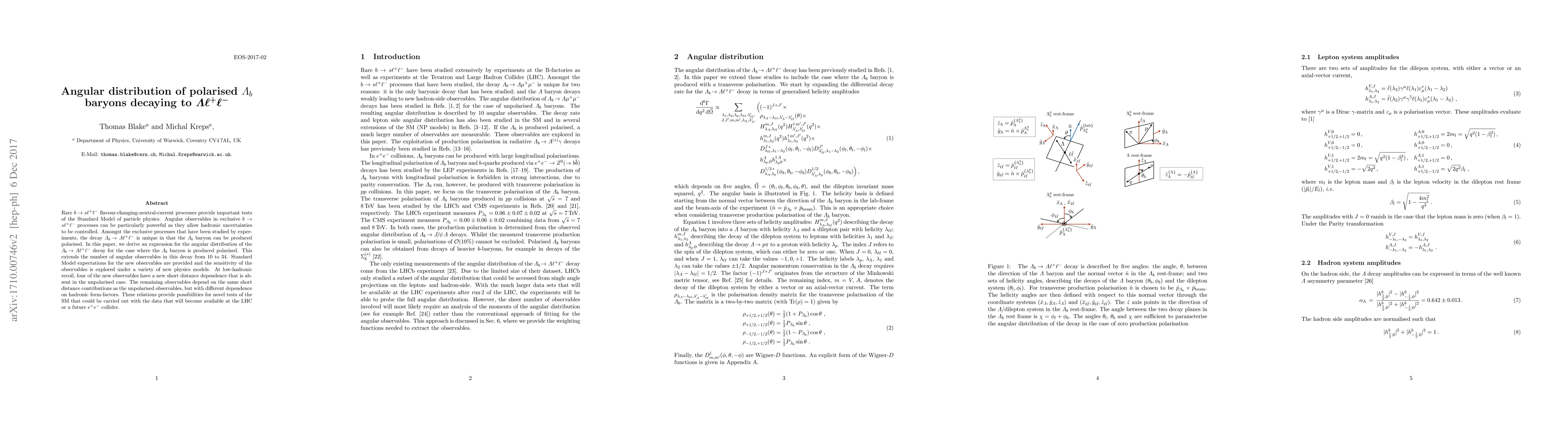 This paper derives an expression for the angular distribution of the $\Lambda_b\to \Lambda\ell^+\ell^-$ decay when the $\Lambda_b$ baryon is produced polarised, extending the number of angular observables from 10 to 34. The study explores the sensitivity of these new observables under various new physics models, providing potential novel tests of the Standard Model with future LHC or $e^+e^-$ collider data.